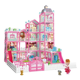 Domek dla lalek wykonany z wysokiej jakości plastiku. Wymarzona rezydencja dla lalek Twojego dziecka, można ją urządzać wedle własnego uznania. Zestaw zawiera 374 elementy w tym: - lalka - pies i kot (2 szt.) - meble (22 szt.) - dodatki (9 szt.) - elementy montażowe domku (340 szt.) Wymiar domku: ok 80x60x50 cm Wymiar opakowania: 50x33,5x11 cm Zasilanie bateryjne: 2x AA Zabawka dla dzieci powyżej 3 lat ilość na palecie 84 szt.