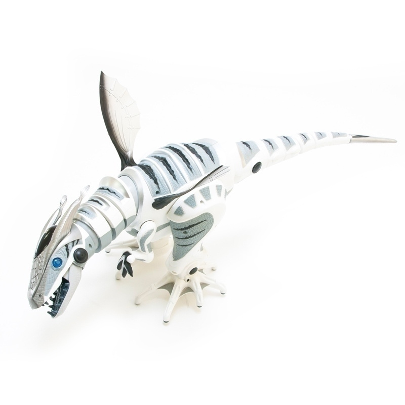 Inteligentny dinozaur ROBORAPTOR GIGANT 80cm - zdalnie sterowany, programowalny, Posiada ponad 40 funkcji, tryb demonstracji oraz funkcje interakcji. Podczas ruchu potrafi poruszać łapami, grzbietem, ogonem, a nawet okręca głowę ROBOZAUR porusza się jak prawdziwy dinozaur. Wbudowane widzenie w podczerwieni, pozwala na detekcje obiektów na jego ścieżce, może również zbliżać się do statycznych obiektów. Posiada wbudowany system trackingowy, możemy wyznaczyć trasę po której będzie szedł nasz dinozaur. Dodatkowo wiele innych trybów pracy. Cechy produktu: - Wymiary: 80*30*22cm - Realistyczne ruchy- obroty głowy, szyi i machanie ogonem - Trzy rodzaje nastrojów- łowca, uważny, zabawny - Nastawienie humor i zachowanie są wzajemnie zależne - Podchodzi i zaczyna zabawę gdy jest w nastroju zabawowym - Podczerwień umożliwia detekcje obiektów na jego trasie oraz zbliżających się do niego. - Mocne szczęki - Technologia laserowego trakingu W zestawie: - robozaur, - pilot zdalnego sterowania, - instrukcja po polsku, - kolorowe opakowanie zasilanie dinozaur: 8x AA (brak w zestawie) zasilanie pilot: 3x AA (brak w zestawie) waga: 1,5kg
