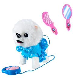 Śliczny pluszowy piesek będzie najlepszym przyjacielem dziecka. Zabawka może służyć jako przytulanka, jest niezwykle miła i miękka w dotyku. Piesek zachwyci każdego swoim wyglądem i przyjaznymi dźwiękami. Szczeniaczek jest tak śliczny, że chce się go cały czas głaskać i przytulać. Po włączeniu wesoło macha ogonkiem, chodzi oraz szczeka. Do obsługi służy włącznik w smyczy. Interaktywny piesek na smyczy jest idealnym pomysłem na prezent, z pewnością stanie się najlepszym przyjacielem i towarzyszem zabaw dziecka. Zestaw zawiera: pluszowego pieska smycz do sterowania ok. 80cm grzebyk i lustereczko Piesek zasilany bateryjne 3x AA Wymiary pieska: 13x24x23 cm Przedmiot zapakowany w dodatkowy karton- gotowy do wysyłki. Wymiary kartonu: 36x28x14cm ilość na palecie 72 szt