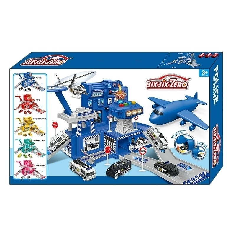 Parking dla aut z lądowiskiem dla helikopterów i dołączonym samolotem. Parking do samodzielnego złożenia, posiada efekty dźwiękowe i świetlne. Zestaw zawiera dwa samochody, w tym jeden zmieniający kolor pod wpływem zimnej i ciepłej wody. Ilość elementów: 29 Zasilanie bateryjne: 3x AG13 Wymiary parkingu: ok. 52x47x22,5 cm Wymiary samochodów: ok. 7x3 cm Wymiary samolotu: ok. 24,5x27 cm Zabawka dla dzieci powyżej 3 lat Wymiar opakowania: 68x39,5x8,5cm