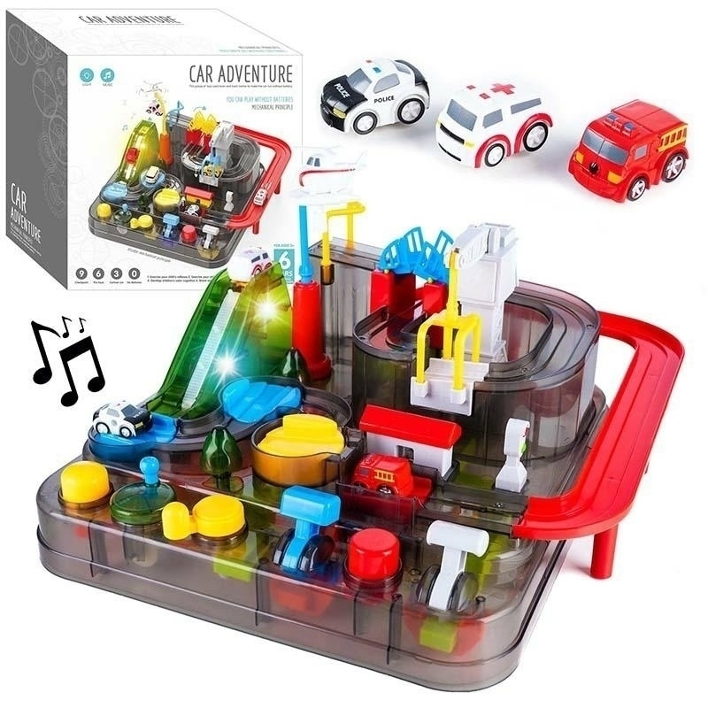 Parking samochodowy - zjeżdżalnia z mechanizmami grawitacyjnymi oraz przekładniami zasilanymi ręcznie. Po włożeniu baterii dodatkowo świeci oraz odtwarza dźwięki. W skład parkingu wchodzi ruchoma winda, dźwig, most itp. Każdy ruchomy element sterowany jest przy pomocy odpowiedniej dźwigni, przycisku lub korby. Zabawka uczy dzieci logicznego myślenia oraz refleksu. Specyfikacja: zasilanie: 2xAA 1,5V wymiary: 36x36x24cm mechanizmy i przekładnie sterujące opuszczaniem mostu, obracaniem dróg, podnoszeniem dźwigu, windą, helikopterem itp. działają bez prądu zabawka odtwarza dźwięki oraz świeci W zestawie: parking - zjeżdżalnia 3 samochody - policja, karetka pogotowia oraz wóz strażacki helikopter z funkcją podnoszenia samochodów wymiary opakowania: 32,5x32,5x16cm Zabawka przeznaczona dla dzieci powyżej 3 roku życia. Ilość szt. na palecie: 60