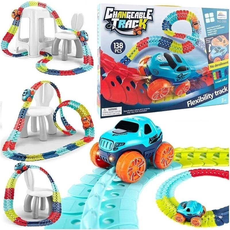 Tor samochodowy do samodzielnego montażu pozwalający na budowę ekstremalnych zakrętów, zjazdów, pętli itp. Aż 138 elementów zapewnia swobodę rozbudowy ekscytujących konstrukcji. Specjalnie zaprojektowany zestaw umożliwia jazdę zarówno w pionie jak i poziomie. Specyfikacja: ilość elementów: 138 dowolność konstruowania toru oświetlenie pojazdu zmienna karoseria pojazdu (2 kolory w zestawie) samochód świetnie trzyma się toru nawet jadąc do góry kołami zasilanie: 3xAAA (brak w zestawie) Zabawka przeznaczona dla dzieci powyżej 3 roku życia. Produkt zapakowany w dodatkowy karton - gotowy do wysyłki. Ilość szt. na palecie: 100