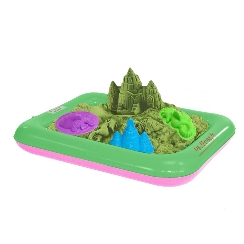 [Magiczny kinetyczny piasek, który nie wysycha ani nie twardnieje nawet po wielokrotnym użyciu. Bez użycia wody gładko uformujesz każdą budowlę, postać itp. A po zakończonej zabawie piasek wraca do oryginalnej formy. Twoje dziecko poczyje się jak na plaży formując budowle, babeczki z piasku. Nie przykleja się do rąk, ubrań i innych przedmiotów. To wszystko sprawia, że piasek kinetyczny idealnie nadaje się do zabawy w domu, przedszkolu czy gabinecie terapii zajęciowej. W zestawie: - pompowana kuweta 58x42 cm - 19 foremek róznego kształtu, - 1 kg piasku kinetycznego ( dwa opkowania po 0,5kg-kolor zielony) - nożyk - pompka - kolorowe opakowanie - instrukcja waga: 1,3kg ilość w kartonie: 24szt.
