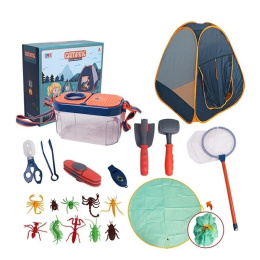 Jeśli Twoje dziecko marzy o biwaku, dzięki temu zestawowi zaspokoisz jego potrzeby nawet we własnym salonie. Dzięki niemu maluch poczuje się jak podczas wyprawy w dziką głuszę bez konieczności opuszczania własnego pokoju. Dziecko będzie mogło bawić się w odkrywanie świata, udział w kempingu albo survivalową przygodę. Łatwy do rozłożenia namiot pozwoli dziecku poczuć się samodzielnie i wypracować przydatne w dalszym życiu umiejętności. Ponadto maluch może odkryć w sobie żyłkę entomologa. W zestawie: - namiot - 10 instektów - torba - 7 akcesoriów - pudełko na owady - siatka naowady Wymiary opakowania: 31,5x28,5x11,8 cm Zabawka dla dzieci powyżej 3 lat