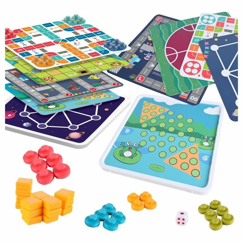 Nie bez powodu gry planszowe uważa się za jedno z najprzydatniejszych narzędzi sprzyjających samorozwojowi dziecka. A co, gdybyś mógł podarować mu nie jedną, a dziesięć gier w jednym. Jest to gra zręcznościowa, która pomaga w nauce kolorów, różnych kombinacji liczb, figur geometrycznych, a nawet zasad poruszania się pieszego po drogach. Przede wszystkim wszystkie te gry ćwiczą refleks i spostrzegawczość. Sprawdźcie swoją zręczność i spryt przy sporej dawce adrenaliny, doskonałej zabawy i salw śmiechu. W grze może uczestniczyć 2-4 graczy. ZESTAW ZAWIERA: 5 dwustronnych kart z grami Kostka do gry pionki w 4 kolorach: po sześć pionków w dwóch kolorach, pięć pionków w kolorze trzecim oraz cztery pionki w kolorze czwartym. 16 klocków z naklejkami RODZAJE GIER - Samoloty - Farmer - Podwójne warcaby - Planetarne trójszachy - Kwadratowe szachy - Kołko i krzyżyk - Piracki skarb - Na drodze - Zwierzęce szachy Ilość sztuk na palecie: 240