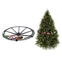 Kolejka świąteczna z możliwością montażu na pniu choinki. W zestawie 3 wagony z torami. Świetne świąteczne malowanie oraz świąteczny tabor z mikołajem. Z przodu lokomotywy zainstalowana dioda LED. W trakcie jazdy dioda świeci, lokomotywa wydaje dźwięki. Świetny efekt montażu na choince. Cechy produktu: - zasilanie: lokomotywy 4 x AA(brak w zestawie) - materiał: wytrzymałe i bezpieczne tworzywo sztuczne - jeździ do przodu - oświetlenie LED z przodu lokomotywy - dźwięki - możliwość instalacji na pniu choinki (średnica od 2,4cm do max 5,7cm) - średnica torów: 89cm - długość torów 279cm W zestawie: - lokomotywa wymiary: 16,5 cm x 8,5 x 5,5cm - wagon zielony wymiary: 14 cm x 6,5 x 4,5cm - wagon srebrny wymiary: 15 cm x 6,5 x 4,5cm - wagon/sanie mikołaja wymiary: 14 cm x 5 x 7,5 cm - długość całego taboru: 59,5 cm