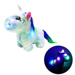 Kolorowy pluszowy jednorożec 30cm z podświetleniem LED. Wykonany z milutkiego pluszu wysokiej jakości. Podświetlenie jednorożca możemy uruchomić za pomocą ukrytego włącznika. Marka: Egaleco Specyfikacja: jednorożec wykonany z przyjemnego w dotyku materiału bardzo miękkie wypełnienie zasilanie bateryjne: 3xAA wymiary: 30x26x14cm tryb świecenia: migotanie Zabawka przeznaczona dla dzieci powyżej 3 roku życia. Ilość szt. w kartonie: 48