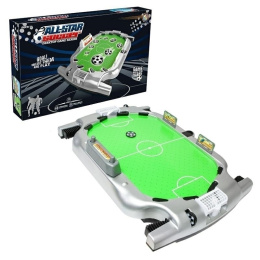 Powietrzne piłkarzyki to świetna i bezpieczna zabawa nie tylko dla najmłodszych. Gra polega na wbiciu krążka - piłki do bramki przeciwnika. Piłka unosi się nad powierzchnią blatu dzięki tunelom powietrznym i wbudowanemu wentylatorowi. Gracze odbijają piłkę za pomocą flipperów. Specyfikacja: 6 krążków - piłek o śr. 3cm powierzchnia blatu - boiska z otworami wydmuchującymi powietrze zasilanie bateryjne: 3x LR14 (C) 8 flipperów do odbijania krążka (po 4 na zawodnika) możliwość włączenia muzyki tablica wyników wymiary: 51x34x12cm wymiary opakowania: 56x35x8,7cm Zabawka przeznaczona dla dzieci powyżej 4 roku życia. Ilość szt. na palecie: 72