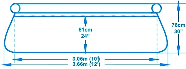 Der Pool ist selbsttragend, Sie müssen nur den oberen Ring aufblasen und den Pool mit Wasser füllen. Die aufsteigende Wassersäule wird das Becken selbst bilden.