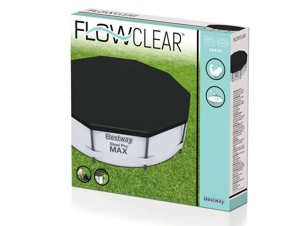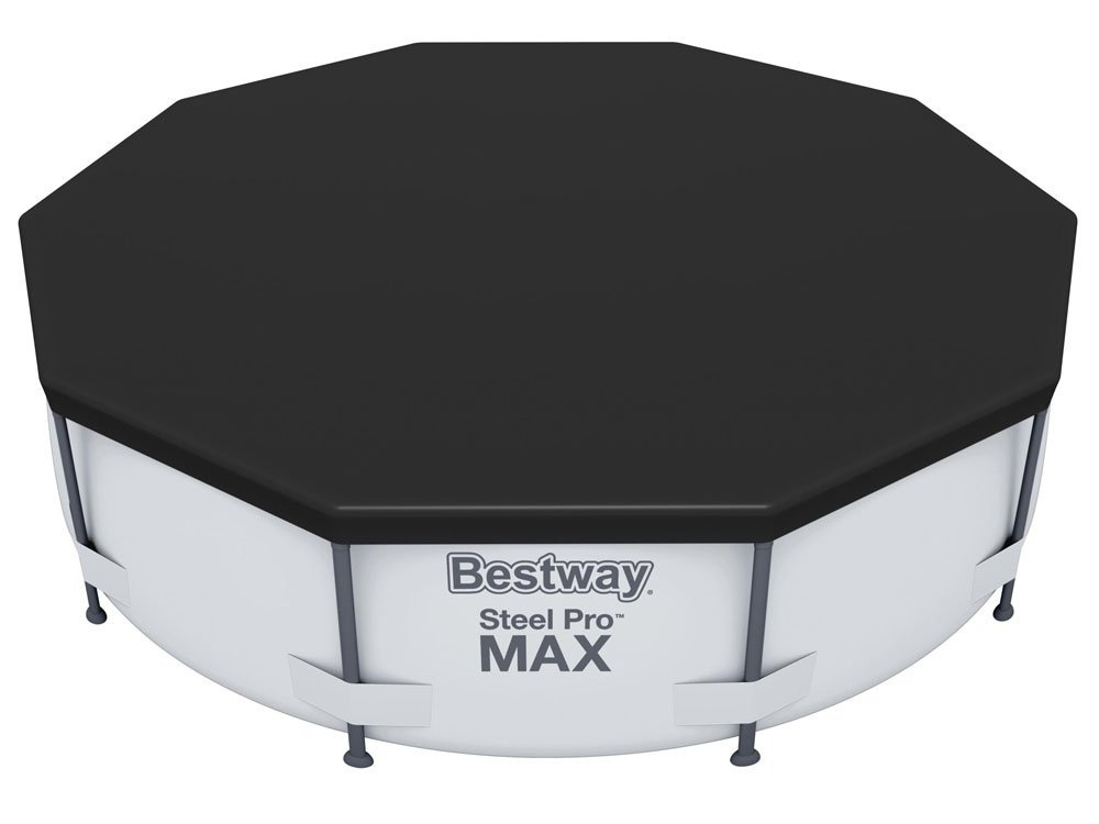 Abdeckung von Bestway für Schwimmbecken mit einer Größe von 305 cm, ist geeignet für alle schwimmbecken mit einer Metallstruktur mit ähnlichem Durchmesser.