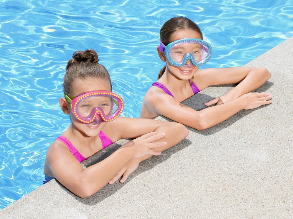 Die farbenfrohe Schwimmbrille ist das diesjährige Bestway-Angebot für alle kleinen Fans von Unterwasserabenteuern.