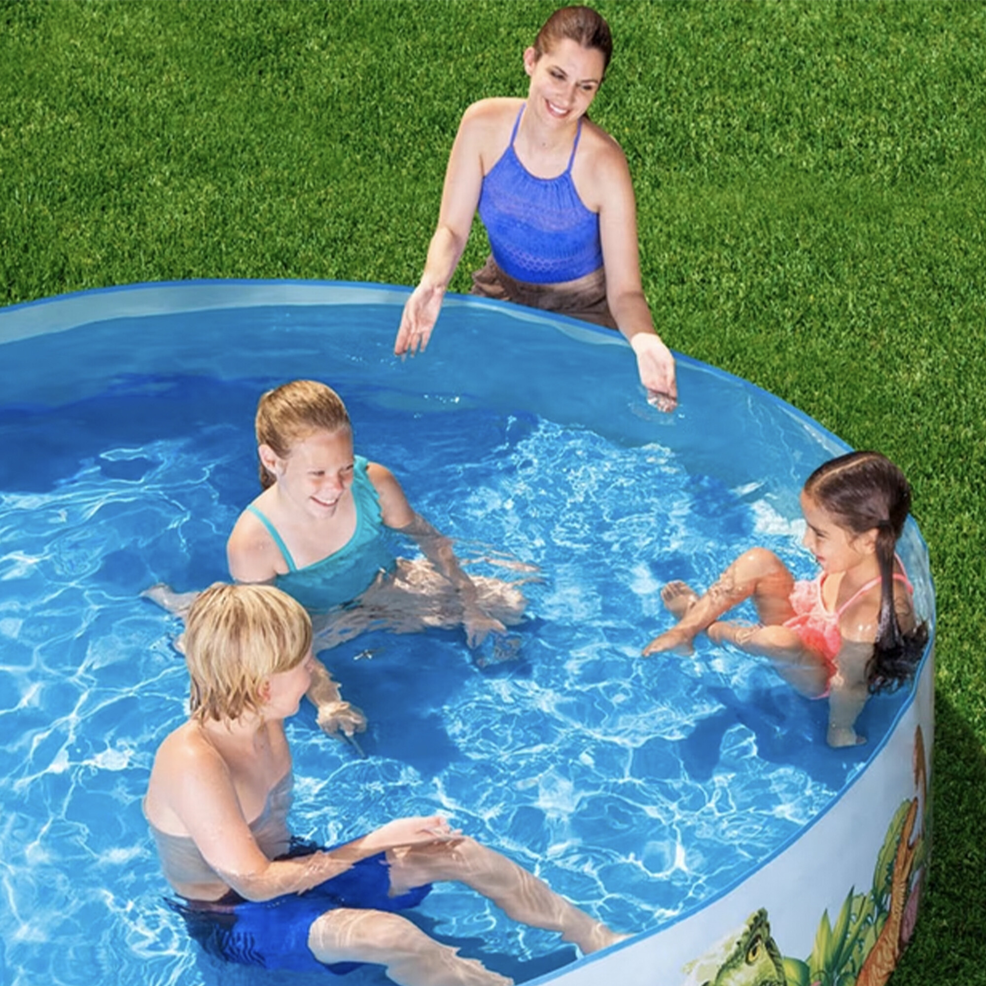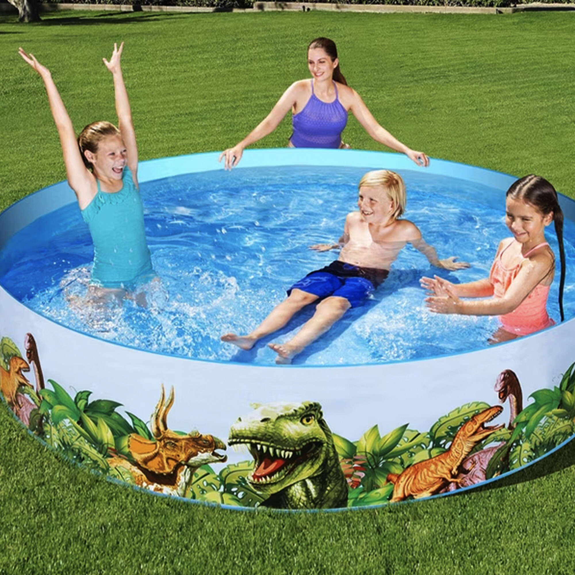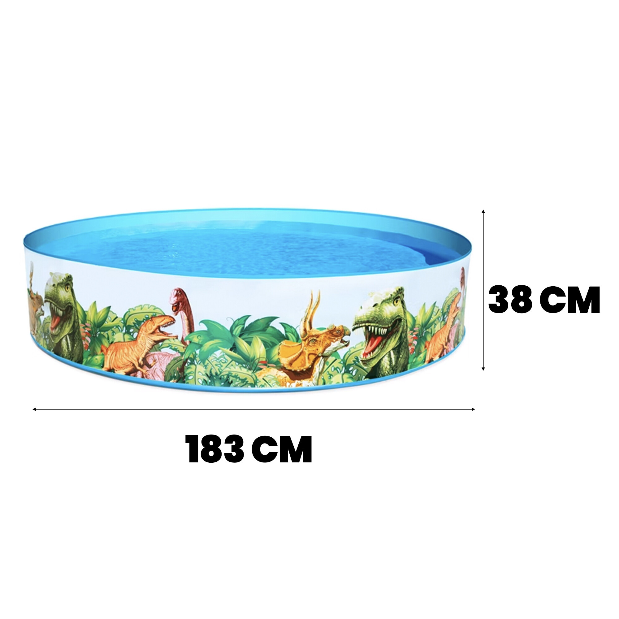 Das Kinderbecken Dino von der renommierten italienischen Firma Bestway ist aus robustem Vinylmaterial gefertigt, das sich beim Befüllen mit Wasser ausdehnt.
