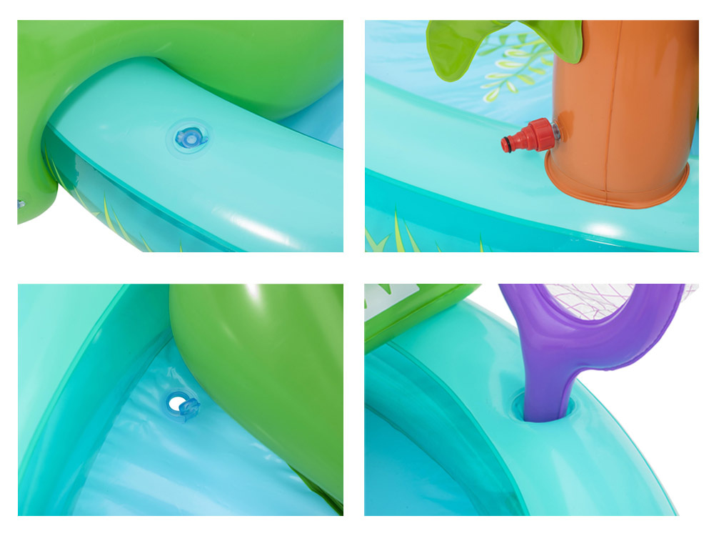 - spryskiwacz: w kształcie palmy, można go łatwo podłączyć do węża ogrodowego, aby zapewnić dodatkowe ochłodzenie i urozmaicić zabawę w wodzie,