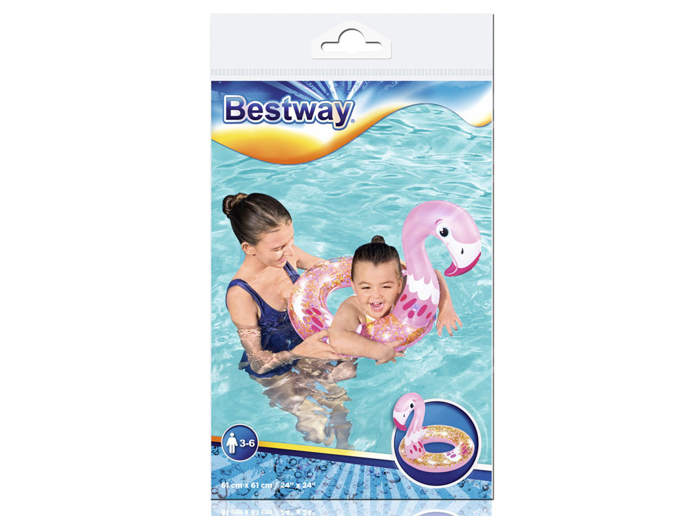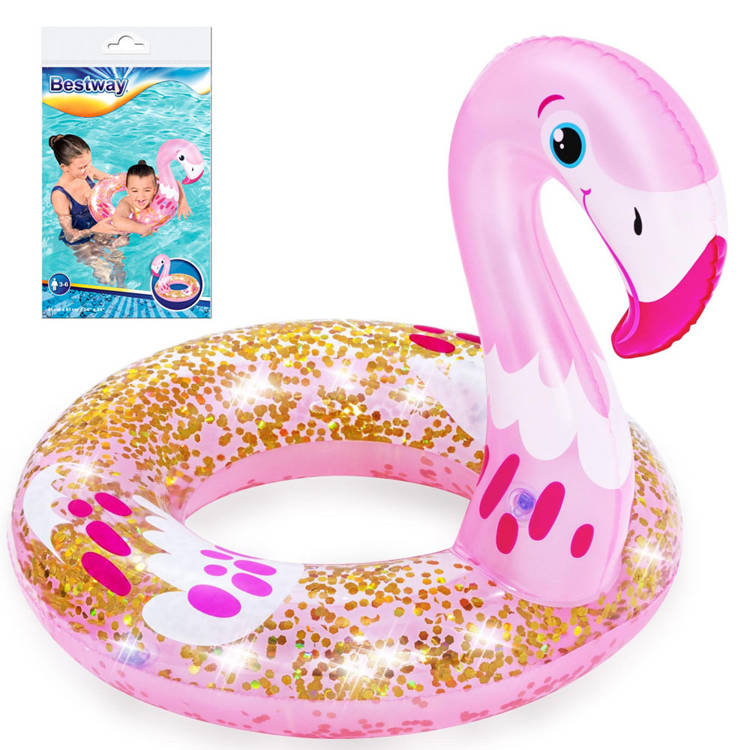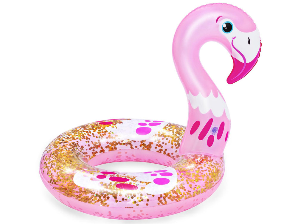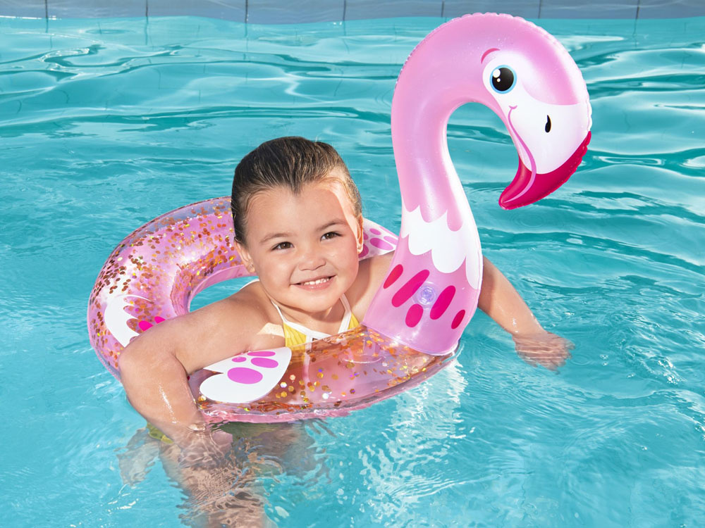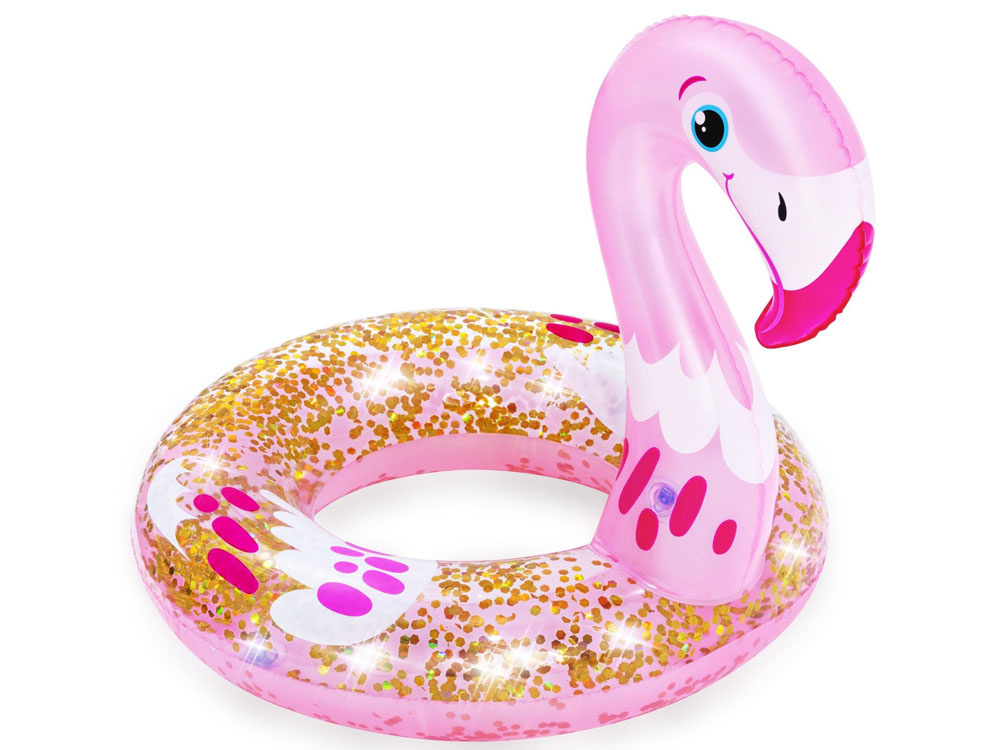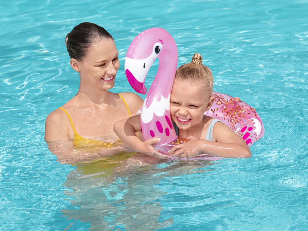 Das niedliche und stilvolle Shimmer N' Float™ ist das Bestway-Produkt für das Urlaubsvergnügen im Wasser. Der rosafarbene Kreis in Form eines Flamingos ist mit Glitter gefüllt, der in der Sommersonne funkelt und schimmert und die Aufmerksamkeit aller Urlauber auf sich zieht.