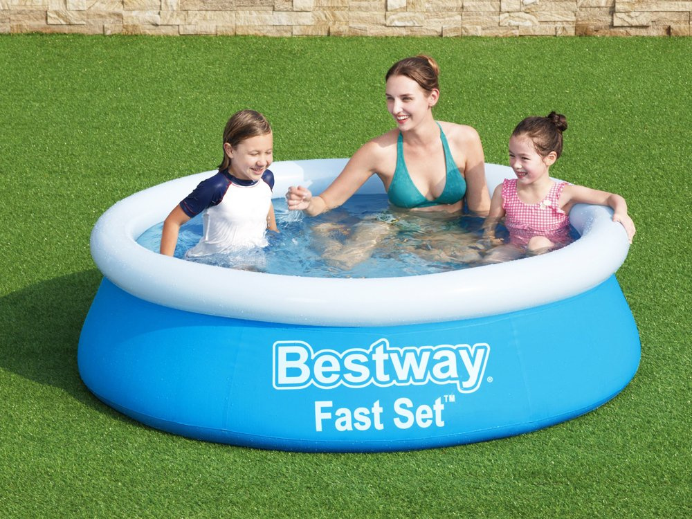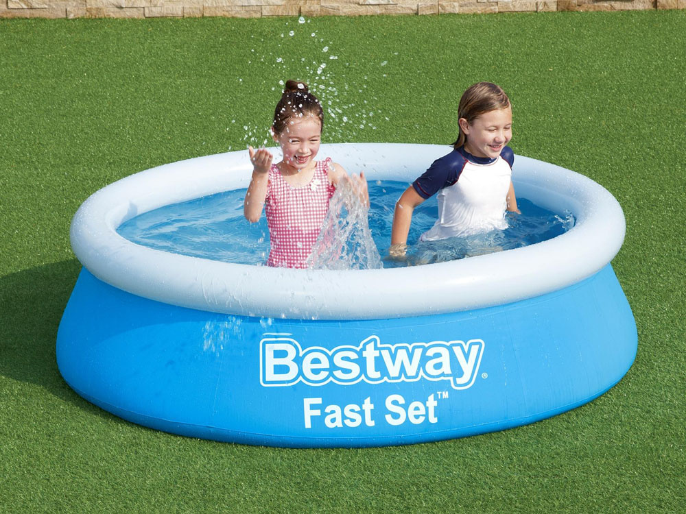 Der runde Gartenpool von Bestway ist eine gute Investition für viele Sommerferien. Der 183 cm x 51 cm große Pool verfügt über eine äußerst langlebige und sichere Konstruktion mit dreischichtigen PVC-Seitenwänden mit DuraPlus™-Technologie. Die Spreizkraft des Wassers und der aufblasbare Ring verleihen ihm Stabilität.
