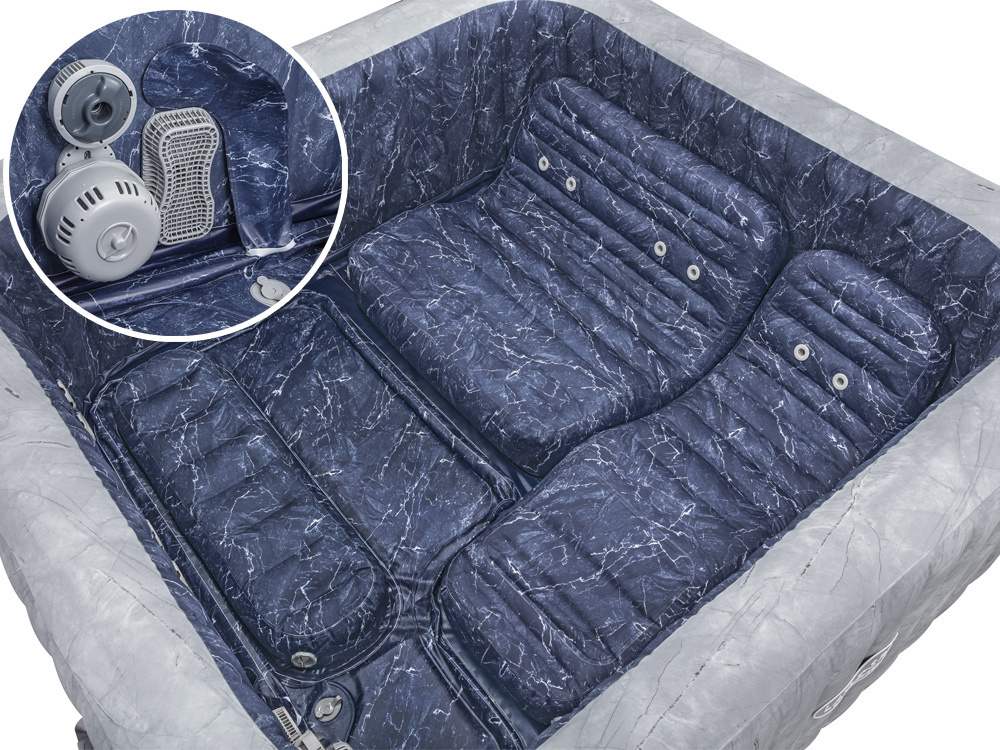 Der tragbare Whirlpool ist mit zwei Massagesystemen ausgestattet - AirJet Luft und HydroJet Wasser.