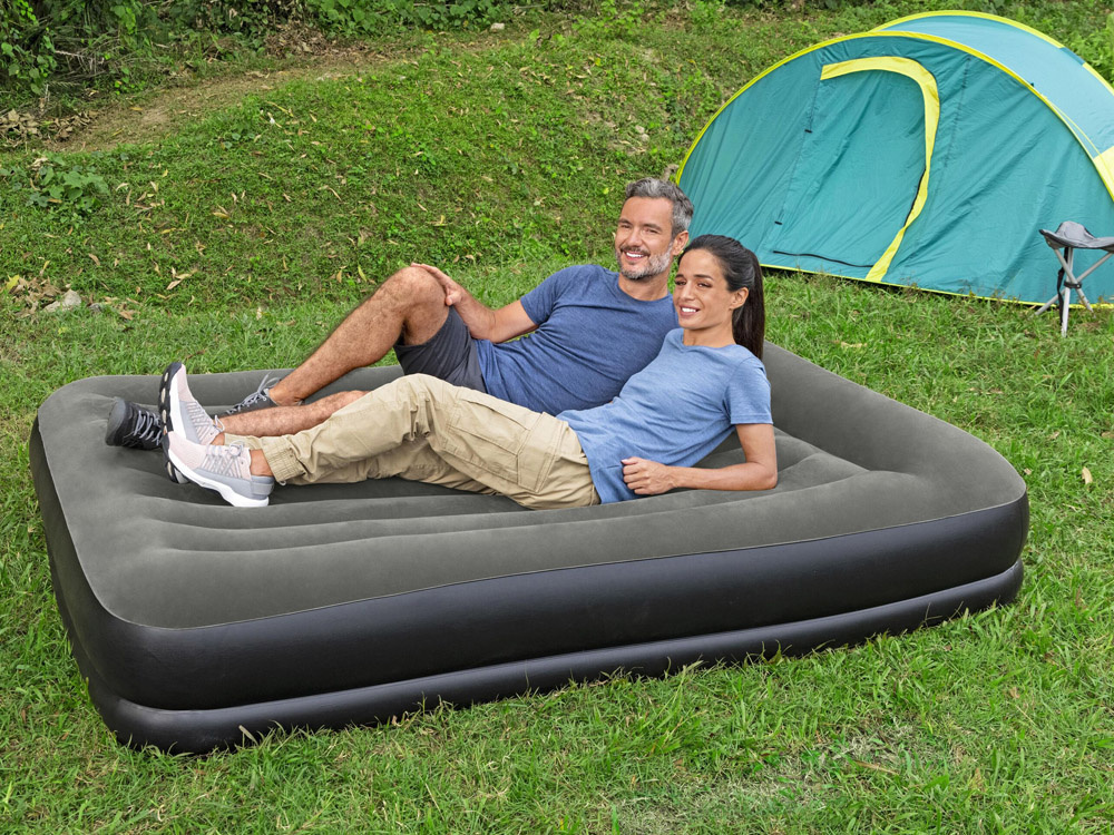 Dwuosobowy, dmuchany materac kempingowy Queen Tritech firmy Bestway został stworzony specjalnie z myślą o osobach lubiących komfortowy wypoczynek, jak również częste wypady na łono natury. Zastosowany wewnętrzny system wsparcia Tritech™ jest o 44% bardziej odporny na rozciąganie, utrzymuje o 19% większy nacisk i jest o 18 % mocniejszy od standardowego PVC. Nawet jeśli równocześnie na materacu będzie przebywało kilka osób, ciężar będzie się rozkładał równomiernie na całej powierzchni. Dodatkowym atutem łóżka jest wbudowana poduszka.