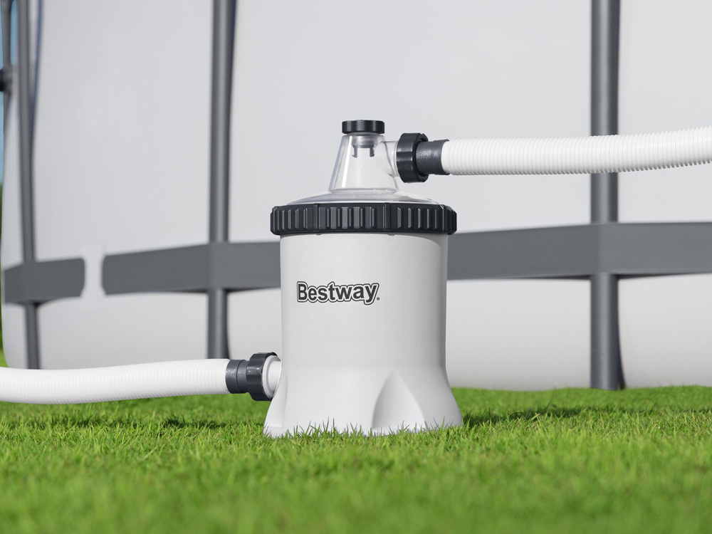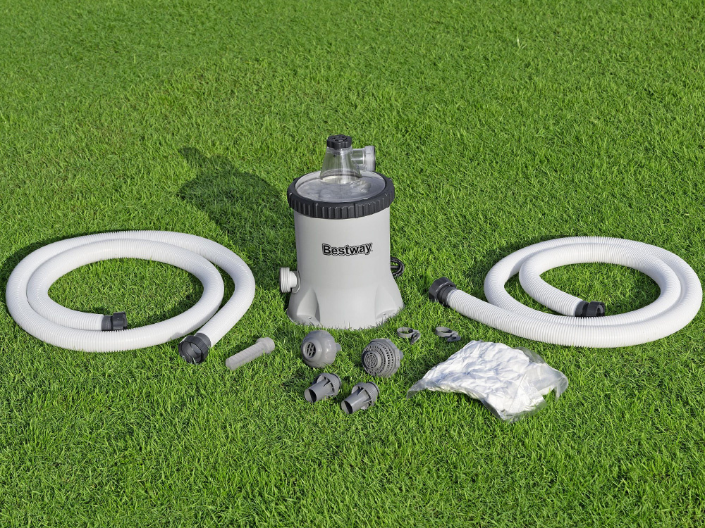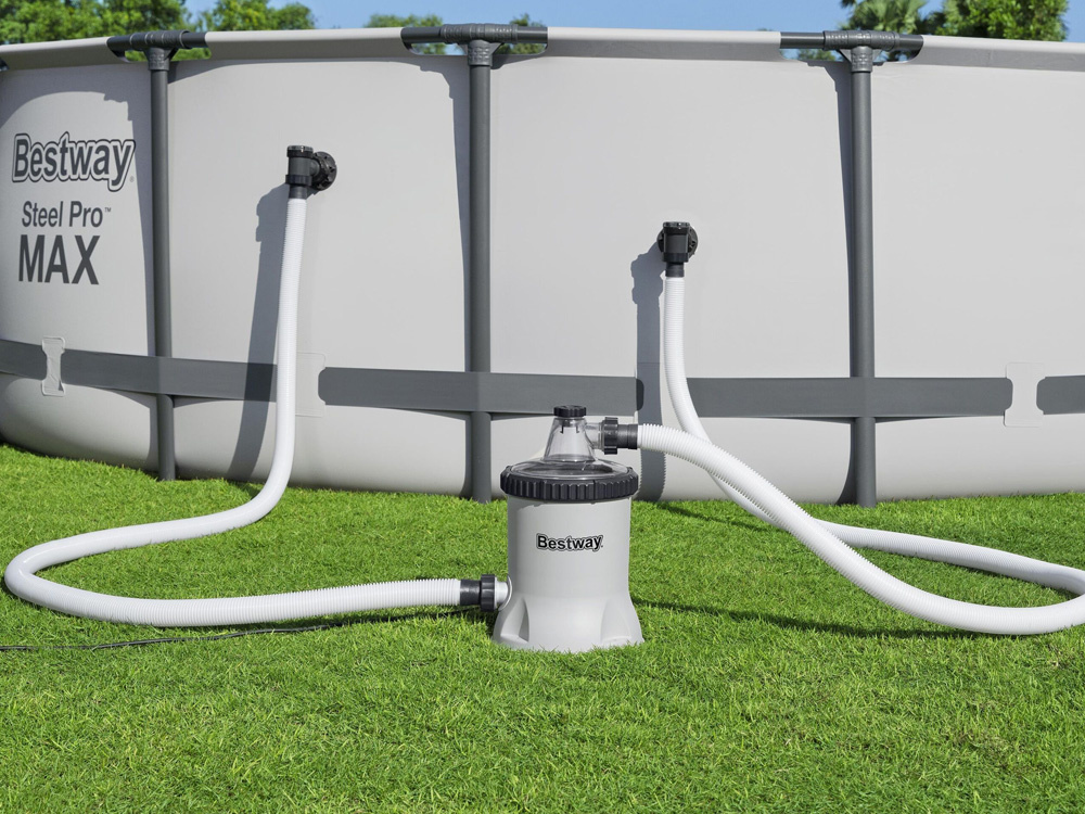 Pompa o wydajności 5678 l/godzinę pomoże oczyścić basen z pływających w nim zabrudzeń i jest idealna do basenów o pojemności od 1 100, aż do 31700 litrów.