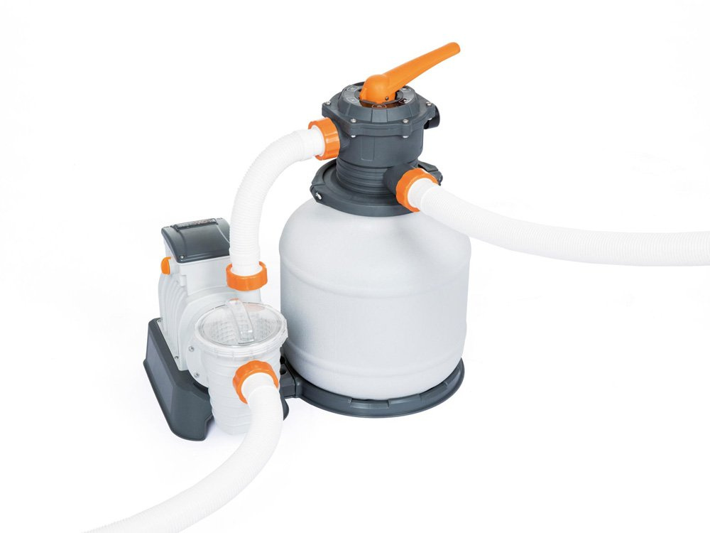 Hochwertiger verzinkter Stahlrahmen, der korrosionsbeständig ist und den Pool sehr stabil macht. Schnellkupplungen für die Durchflusskontrolle.