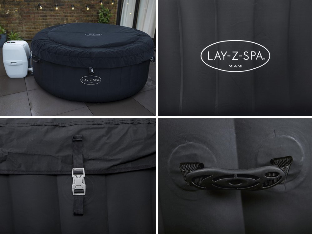 Der Lay-Z-Spa Miami AirJet kann praktisch überall aufgestellt werden, wo es eine ebene Fläche gibt, zu Hause, auf der Terrasse, im Garten. Der gepolsterte Boden, die aufblasbaren Wände und die robusten vertikalen Balken (48 Balken) sorgen für eine ausgezeichnete strukturelle Stabilität und Komfort beim Entspannen.