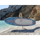 Jedną z najlepszych cech tej deski jest jej dwufunkcyjnośća. Nie masz ochoty stać i wiosłować? Po prostu użyj dołączonego podnóżka i siedziska z oparciem, aby zamienić deskę w kajak. Na tej desce jest wiele opcji przechowywania rzeczy osobistych, w tym wbudowana butelka na wodę z regulowaną gumką do różnych rozmiarów butelek, elastyczne linki z przodu i z tyłu deski do przywiązania rzeczy osobistych oraz tylne pierścienie D z linką mocującą do chłodziarki lub dodatkowego miejsca do przechowywania. Trzy wyjmowane płetwy zapewniają również lepsze śledzenie w wodzie, a antypoślizgowa podkładka trakcyjna w kształcie diamentu pomaga zachować równowagę na desce. Ponadto, szybko zwalniana zwijana smycz może być noszona w pasie lub kostce, w zależności od poziomu komfortu, aby utrzymać deskę blisko siebie. W przypadku konieczności zwolnienia smyczy, pociągnij za zakładkę szybko zwalniającą, aby łatwo odłączyć ją od deski.