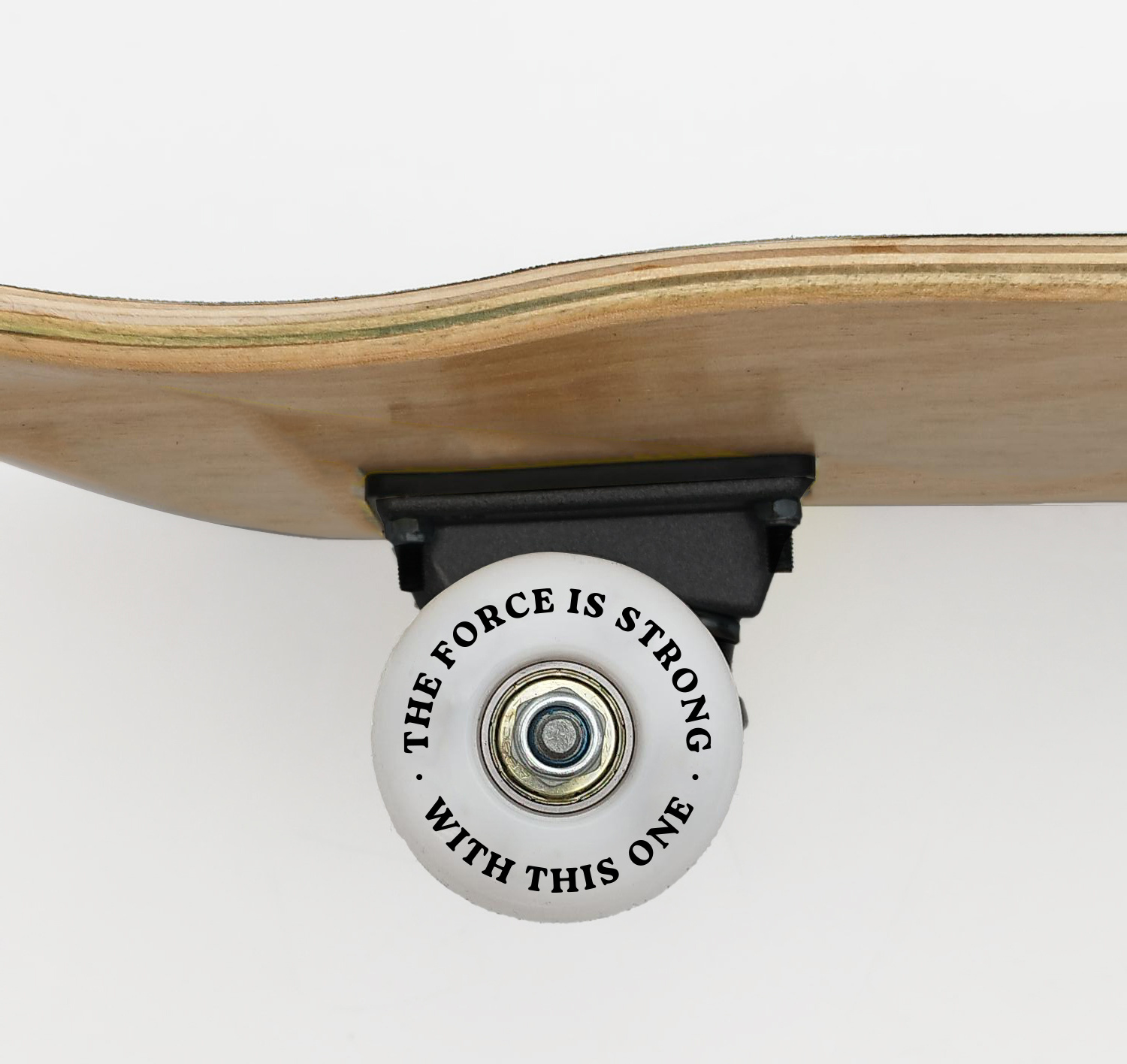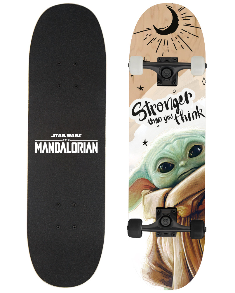 Dřevěný skateboard ozdobený módními vzory Star Wars. Je ideální pro použití na chodnících, náměstích a městských uličkách. Deska je vyrobena z odolného dřeva a má protiskluzový povrch, který zajišťuje trakci a zvyšuje bezpečnost.