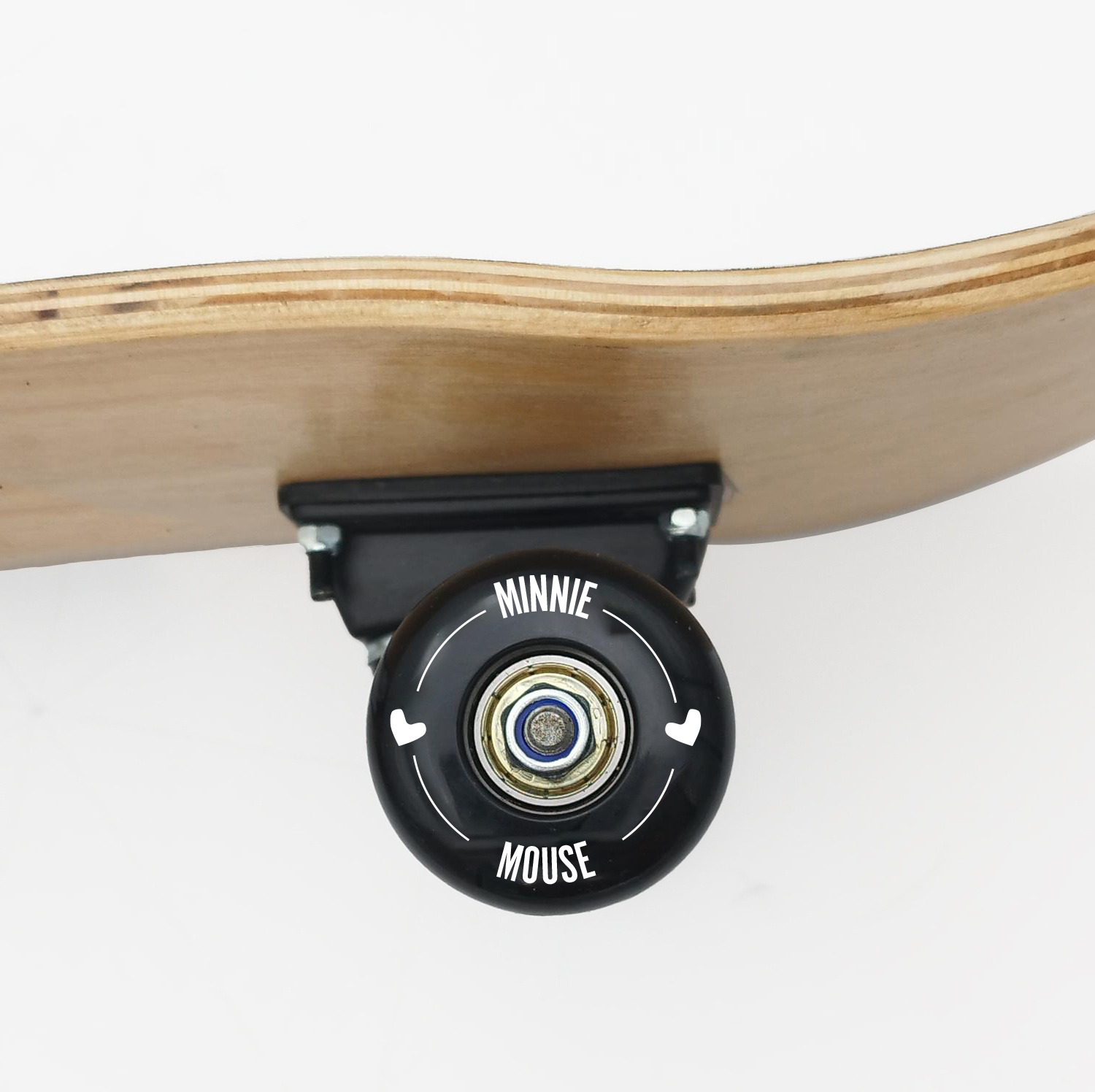 Dřevěný skateboard zdobený módními vzory Disney. Je ideální pro použití na chodnících, náměstích a městských uličkách. Deska je vyrobena z odolného dřeva a má protiskluzový povrch, který zajišťuje trakci a zvyšuje bezpečnost.