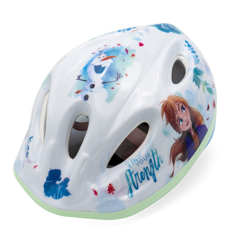 Přilba je doporučena pro děti při používání kol, bruslí, koloběžek atd. Vnější část helmy je vyrobena z PVC a zdobena postavami z Ledového království, vnitřní část je vyrobena z náraz pohlcující pěny EPS. Helma je vybavena nastavovacím knoflíkem pro přizpůsobení helmy hlavě dítěte, popruhy na obou stranách se zapínají pod bradou pomocí přezky s měkkou podložkou. V plášti helmy jsou ventilační otvory.