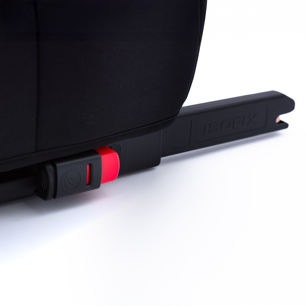 The seat is equipped with the ISOFIX system, which provides a safe and stable way to attach the booster seat to the vehicle, even when the child is not sitting in it.