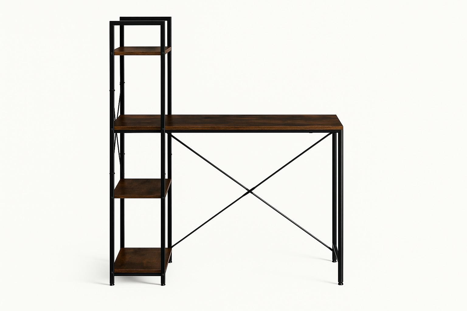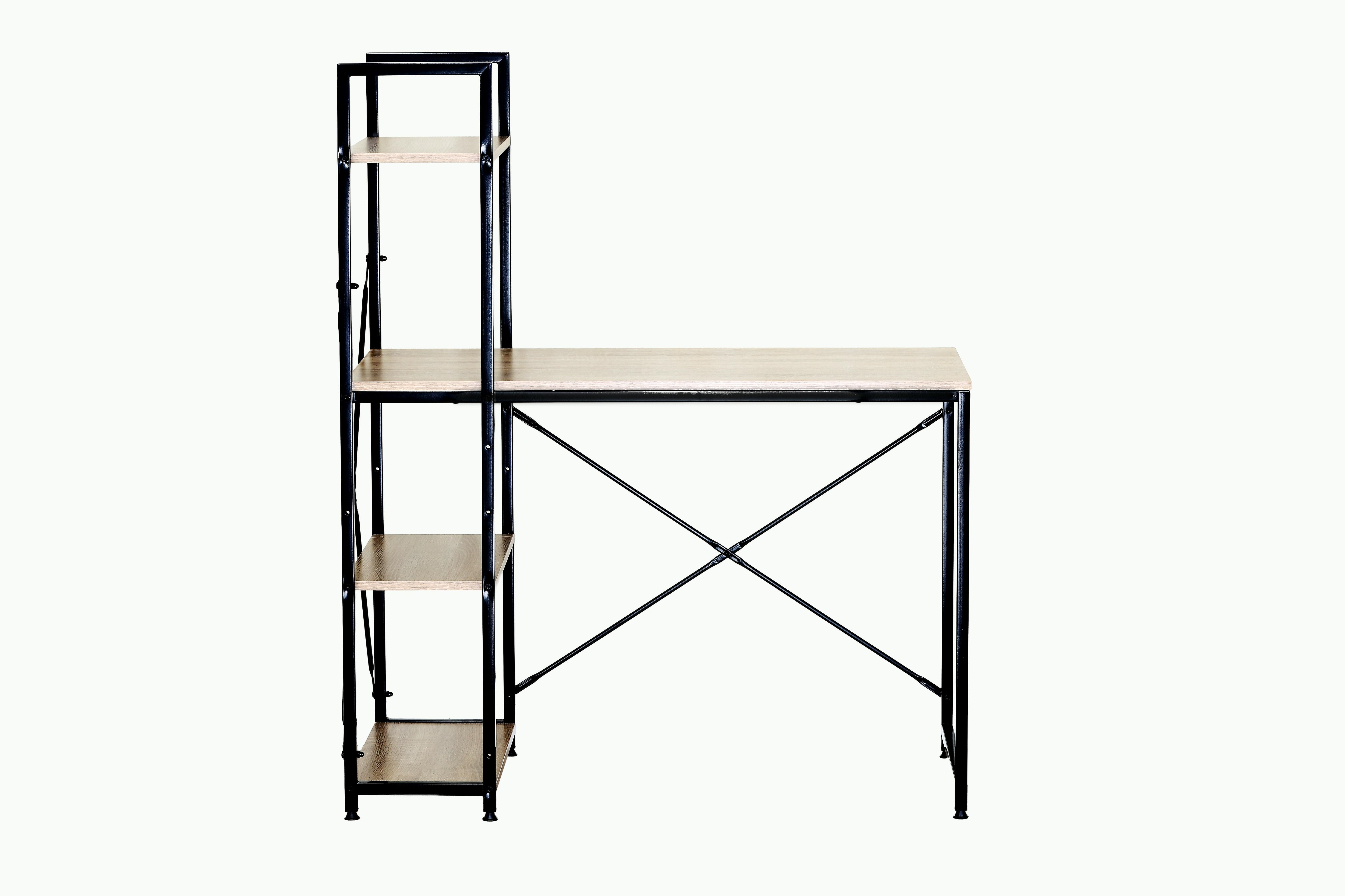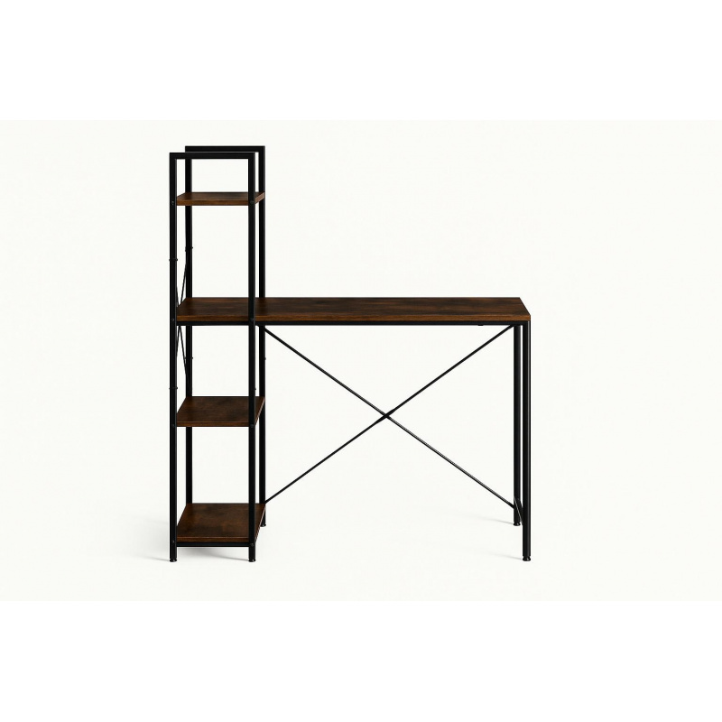 Nowoczesne biurko zintegrowane z regałem to idealne rozwiązanie do domowego biura, pokoju młodzieżowego lub gabinetu. Posiada przestronny blat roboczy oraz trzy funkcjonalne półki na książki, dekoracje lub pojemniki z akcesoriami. Stabilna metalowa konstrukcja i drewnopodobne wykończenie nadają mu elegancki i uniwersalny charakter. Biurko uniwersalne, można montować na lewą i prawą stronę. Biurko w kolorze: Dąb antyczny WYMIARY: 100x52x120cm Maksymalne obciązenie biurka 50kg Maksymalne obciążenie pólki 5kg Biurko zawiera 3 półki o wymiarze 48x24,5cm Wymiar blatu biurka: 100x48cm Wysokość blatu od podłoża: 71,5cm Grubość blatu: 14mm Wymiary kartonu: 138x54x8cm Towar zapakowany w karton, gotowy do wysłki. ilość na palecie: 30 szt