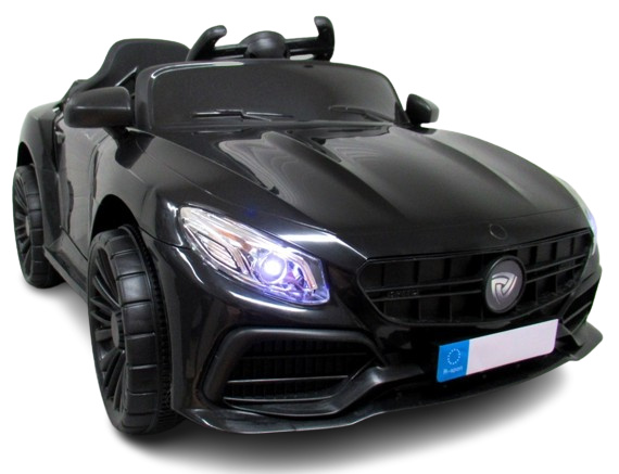 Sportowy dziecięcy samochód cabrio na akumulator zdalnie sterowany na pilota CABRIO Z6 MUZYKA + KLAKSON+GNIAZDO MP3+PILOT 2.4G Sportowa kierownica Funkcja Bujania Wymiary autka: 88x47x40cm KOLOR CZARNY