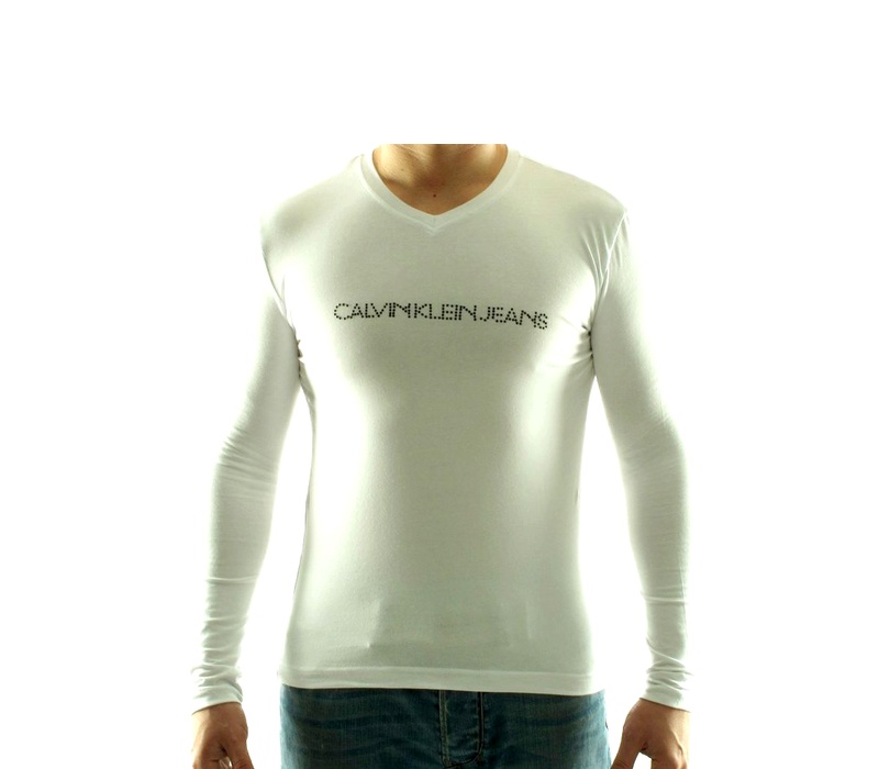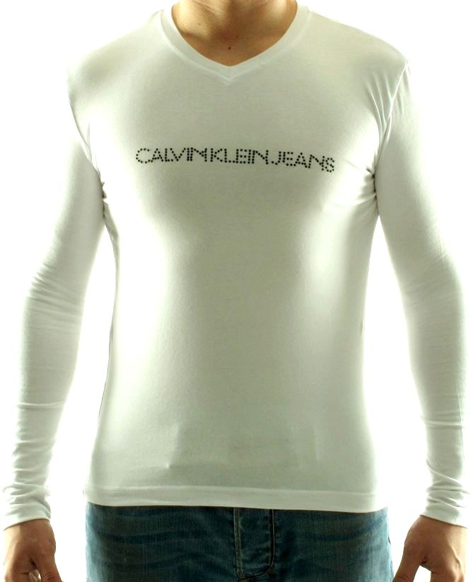 Herren-T-Shirt von Calvin Klein mit langen Ärmeln und V-Ausschnitt, in originellem, stilvollem Design, entworfen für anspruchsvolle Männer.