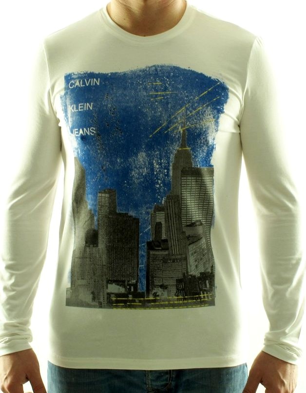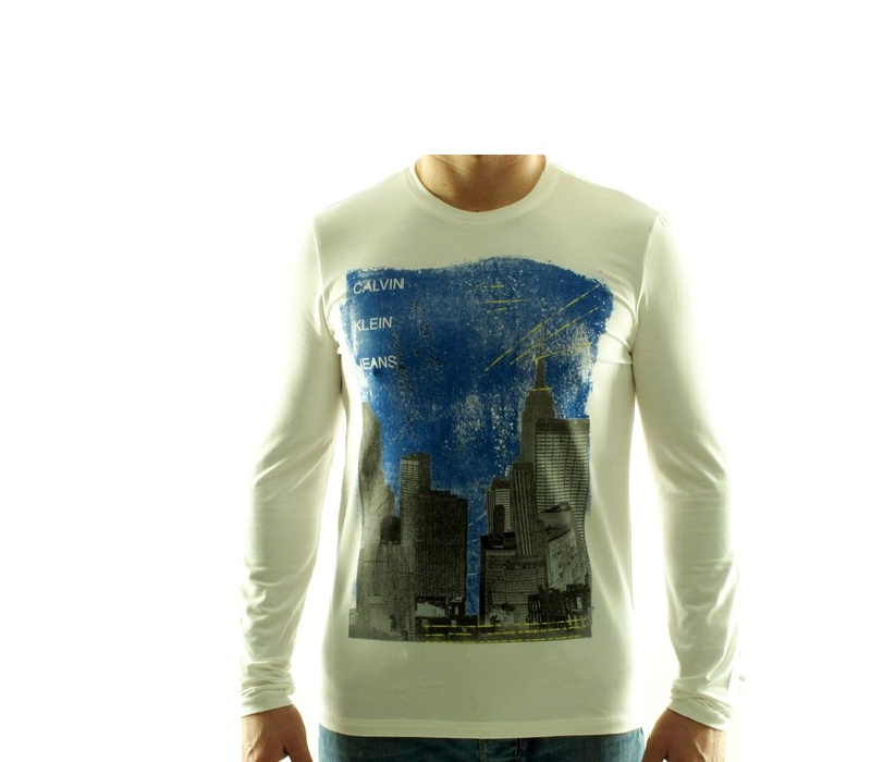 Herren Marken T-Shirt Calvin Klein mit langen Ärmeln und Rundhalsausschnitt, im originellen stilvollen Design, für anspruchsvolle Männer.