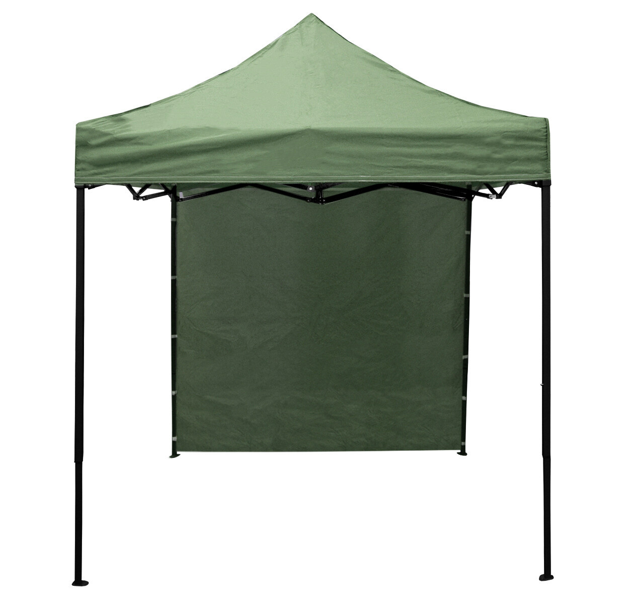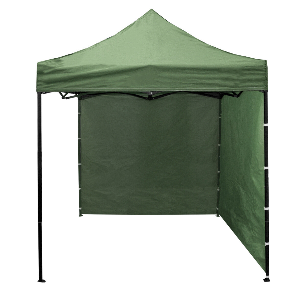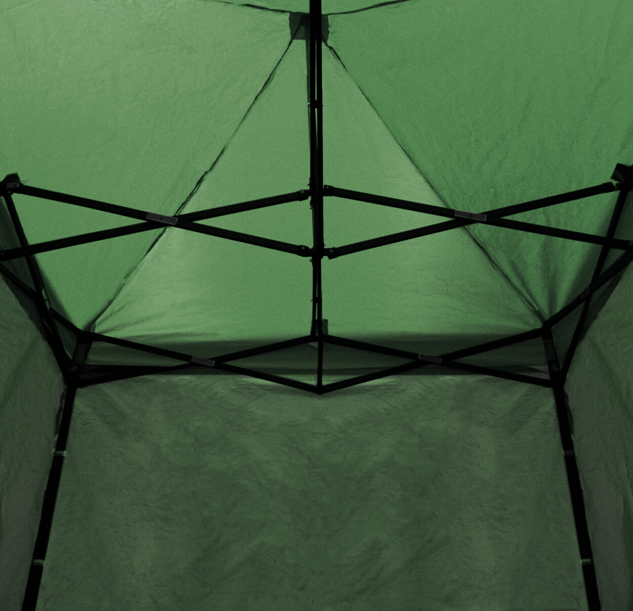Verkaufsstand mit schnell aufklappbarer Scherenkonstruktion, ausgestattet mit drei abnehmbaren Seitenwänden, die mit Klettverschluss befestigt sind, und einer dreistufigen Höhenverstellung.