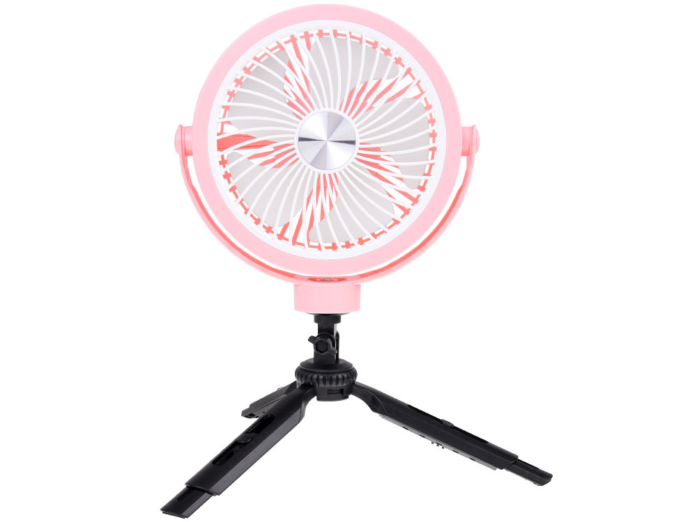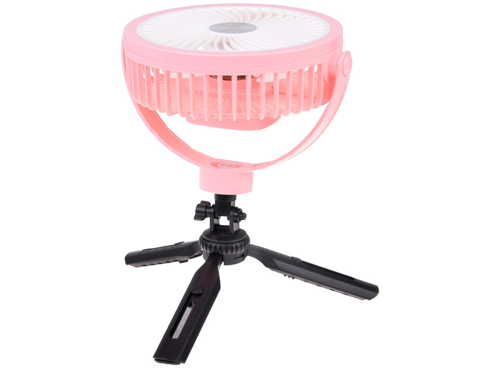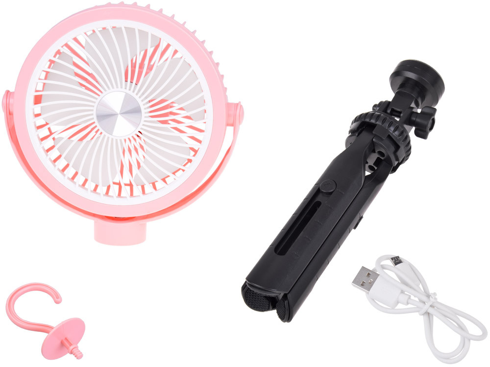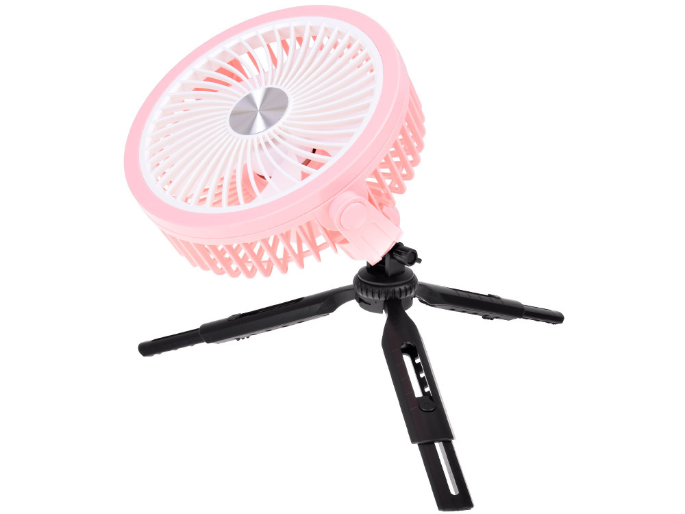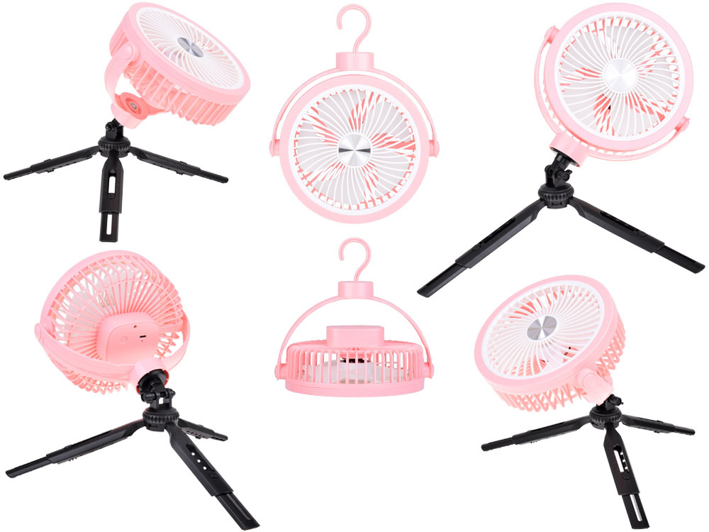 - Uniwersalność zastosowania: wiatrak można zawiesić w namiocie na haczyku, postawić na regulowanych nóżkach na biurku w pracy.