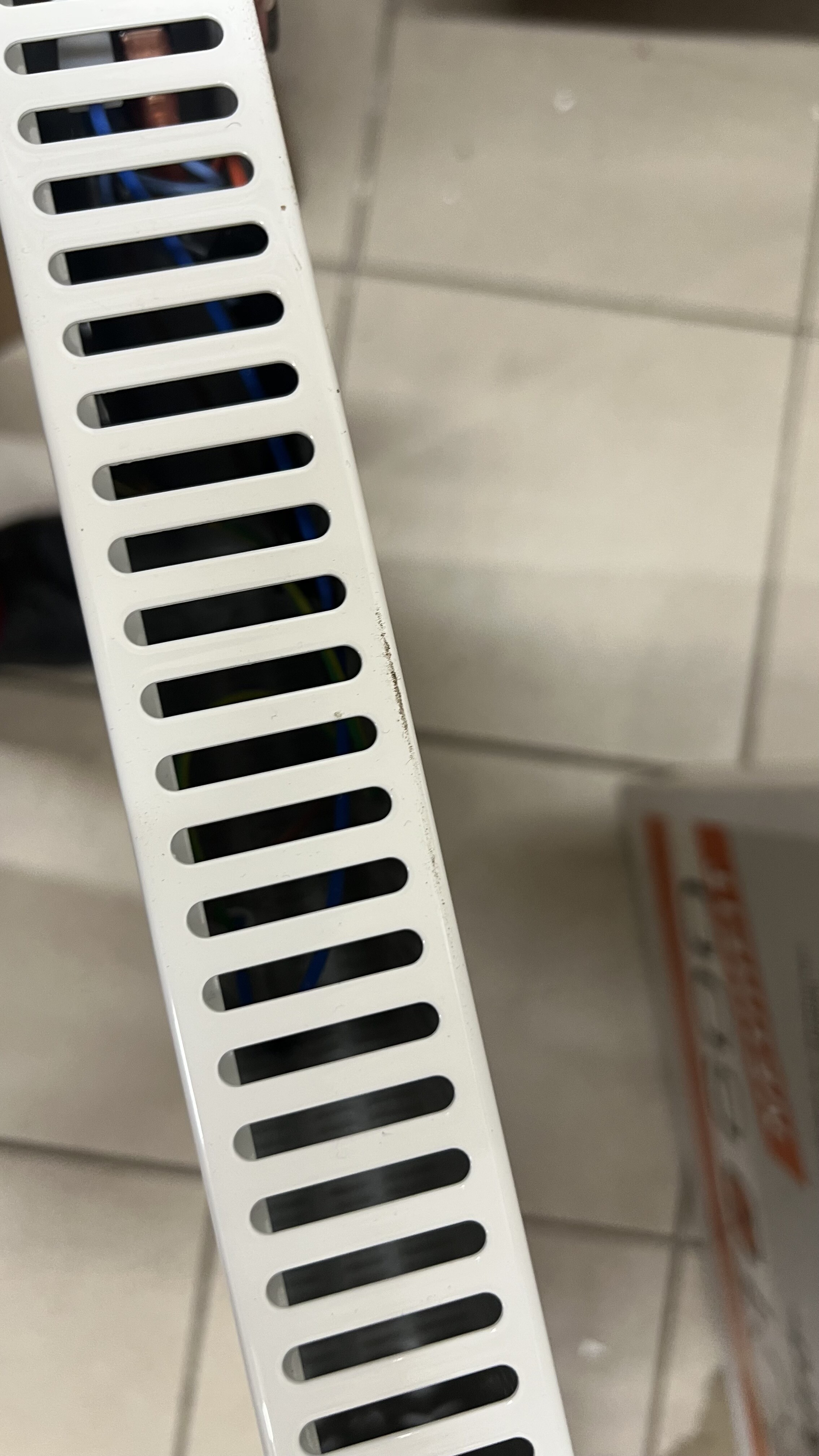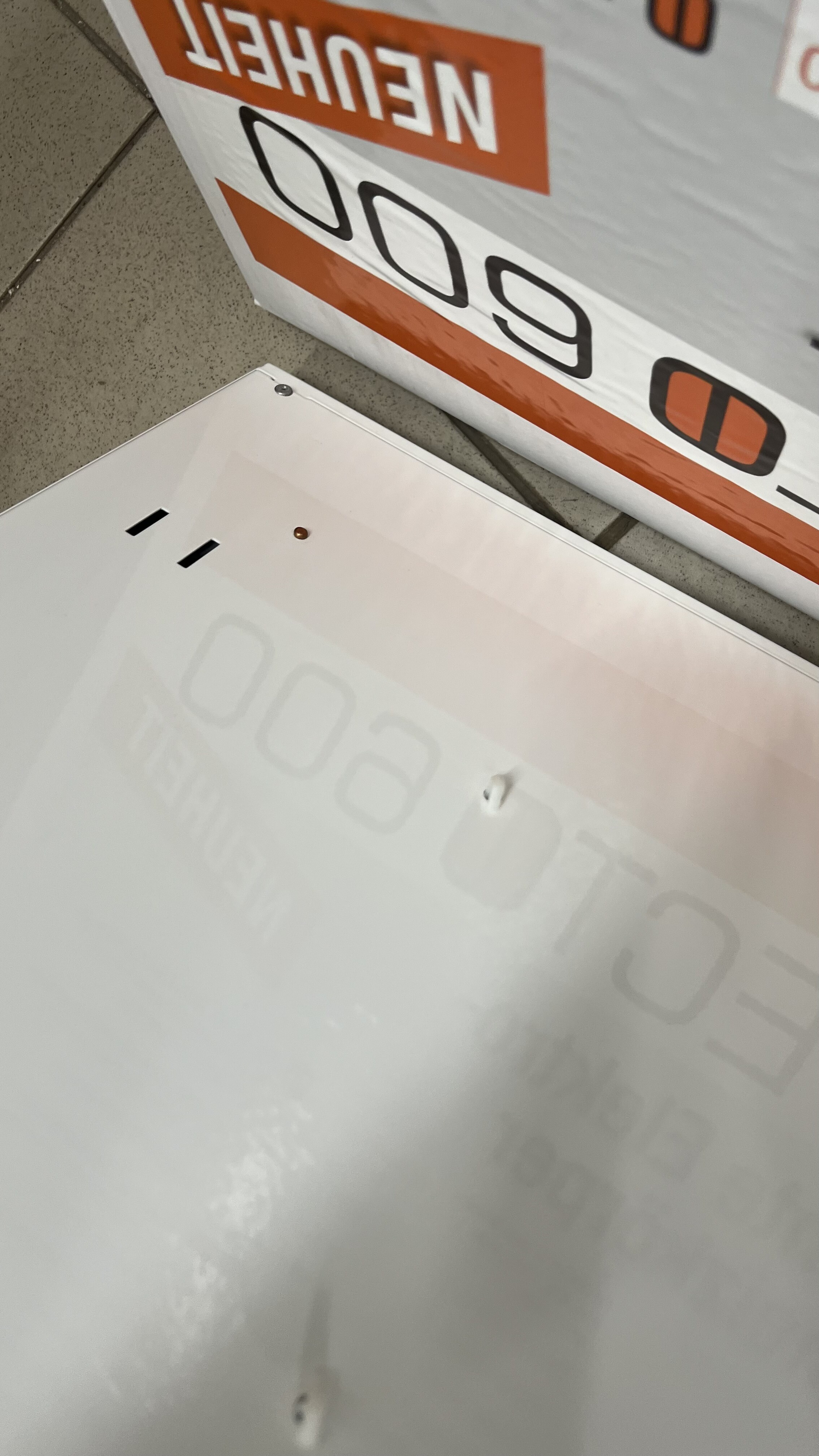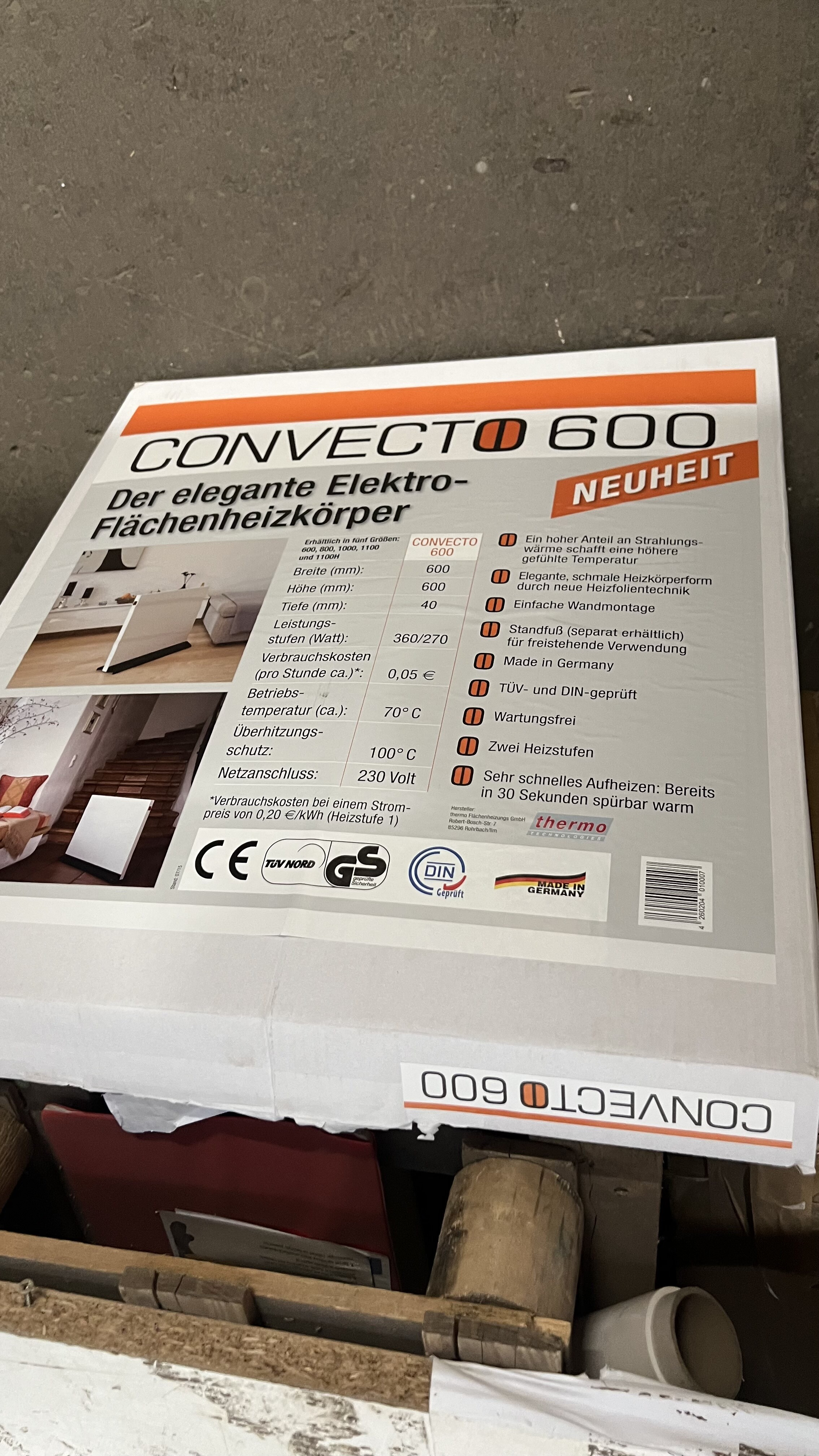 Der elektrische Konvektor wurde zu Werbezwecken verwendet, hat ein paar Kratzer durch den Transport.
