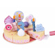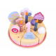 Na wierzchu tortu znajduje się urocza, wyjmowana dekoracja z samych słodkości oraz świeczki i kolorowe cyfry, które pozwalają „świętować” kolejne urodziny lalek, misiów i przyjaciół z pokoju zabaw. Wszystko umieszczone jest na eleganckiej, drewnianej paterze, a w zestawie znajduje się również szpatułka do serwowania kawałków.