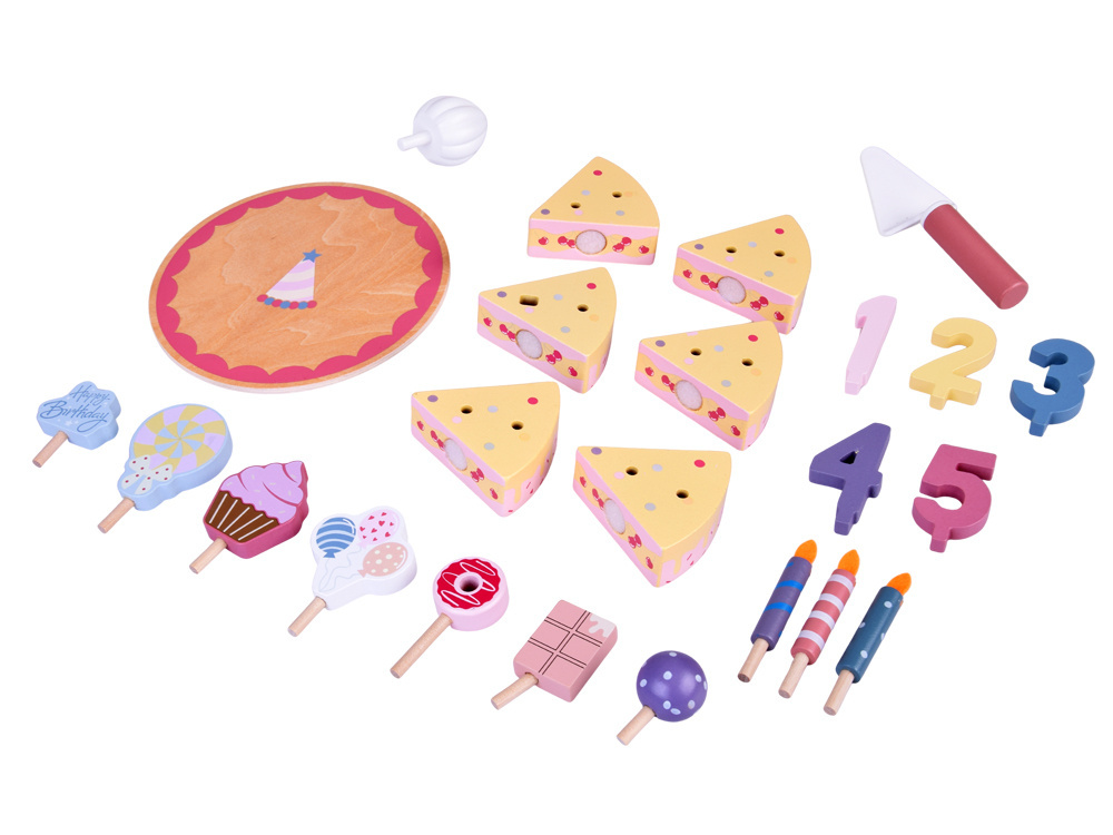 Drewniany Kolorowy Tort Urodzinowy do Krojenia – Zabawa w Urodziny!