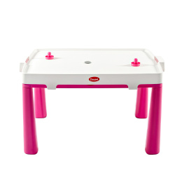 Der Tisch wird zusätzlich mit einer Spielfläche für Airhockey geliefert, die auf den Tisch gelegt werden kann. Mit diesem Airhockey kann der Spaß beginnen. Überraschen Sie Ihr Kind mit diesem schönen Tisch und sorgen Sie für Momente voller Spaß sowie eine schöne Dekoration für das Zimmer oder den Garten.
