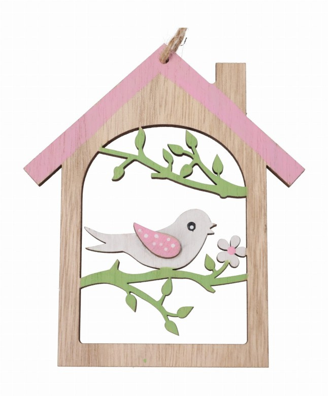 Z delikatnymi detalami i pastelowymi akcentami, jest idealnym dodatkiem do wielkanocnych aranżacji. Ptaszek na dachu domku symbolizuje nadchodzącą wiosnę i nowe początki, a naturalne drewno nadaje ozdobie ciepły, rustykalny charakter.