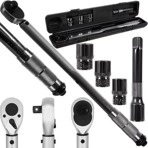 Der Drehmomentschlüssel mit Kappen und Verlängerung wurde für die anspruchsvollsten Arbeiten entwickelt. Präzise ausgewählte Materialien, hohe Verarbeitungsgenauigkeit und Beständigkeit gegen Verformungen und Risse bestimmen ihre Zuverlässigkeit. Das Werkzeug, der Drehmomentschlüssel, ist ideal zum Lösen und Anziehen von Schraubverbindungen verschiedener Typen. Der Mehrzweck-Ratschenschlüssel ist perfekt für Arbeiten, die Präzision und Sorgfalt erfordern, ebenso wie für die tägliche Arbeit mit Vierkant- und Sechskantschrauben, Motorradmuttern und Haken.
