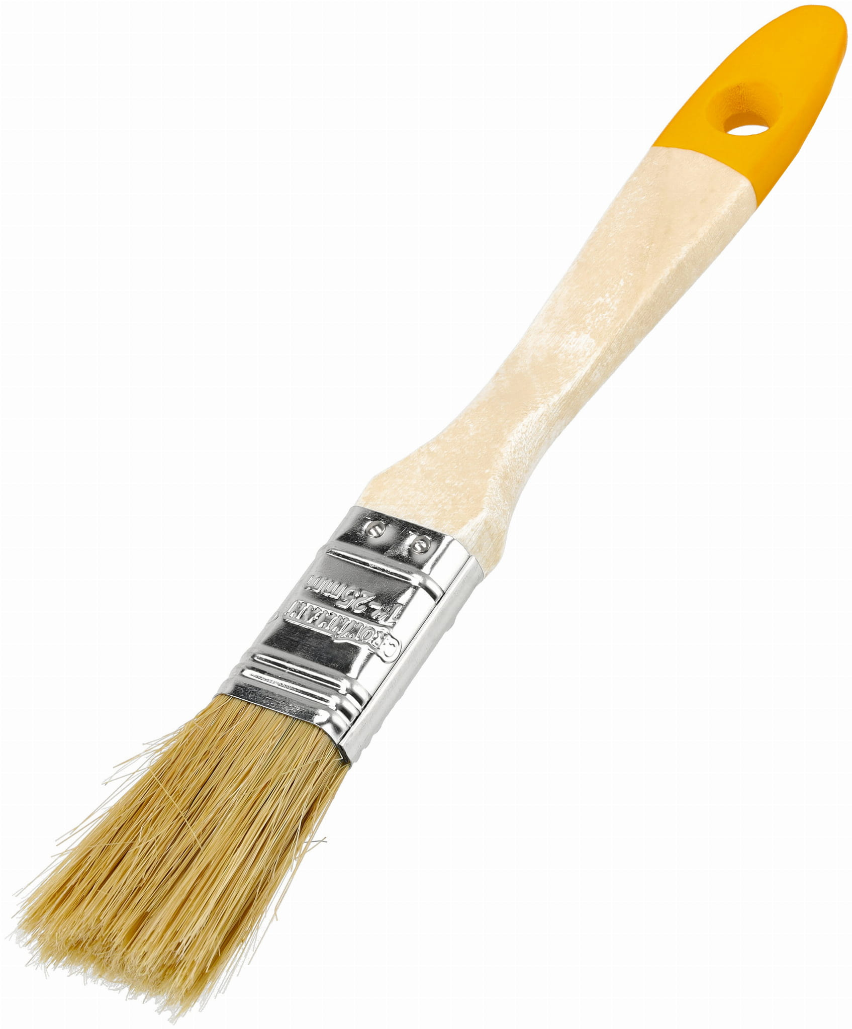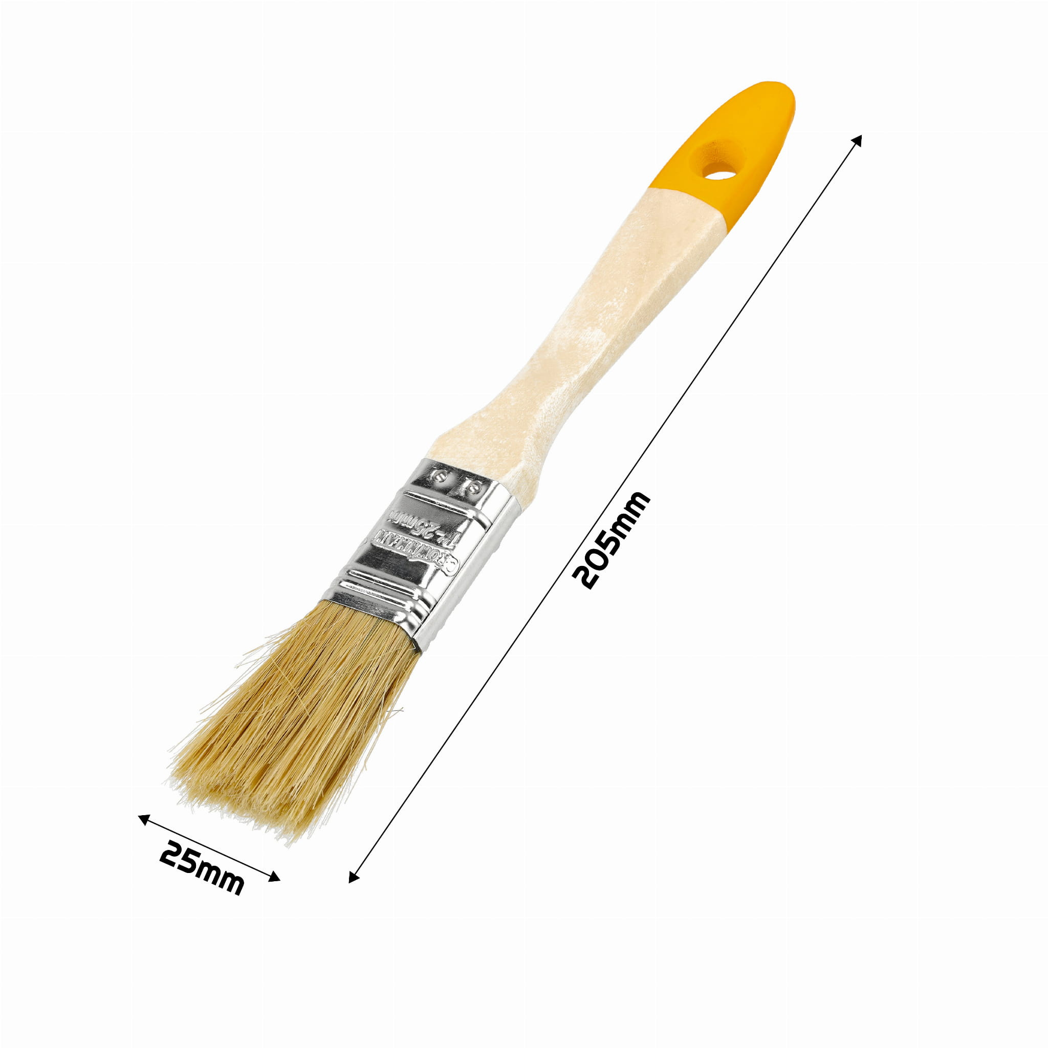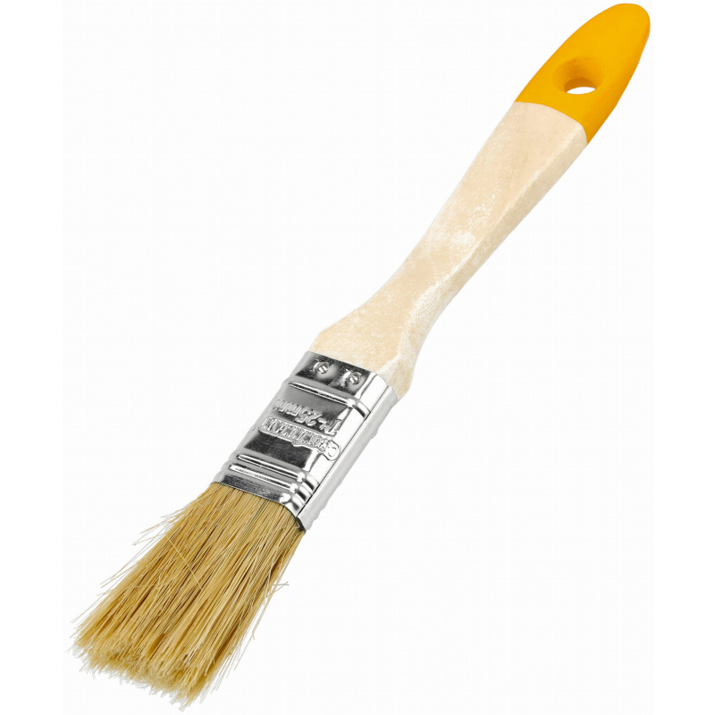 Štětiny jsou orámovány kovovým pouzdrem a upevněny na dřevěné rukojeti.