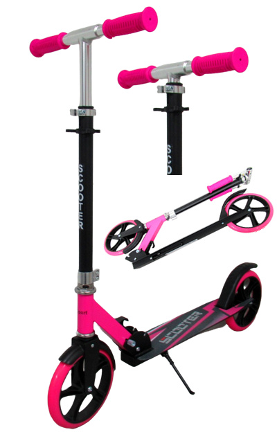zweirädriger, faltbarer Kinderroller R-Sport! Höhenverstellbarer Lenker, Modell H5 Bremse, Fußstütze SOLIDE KONSTRUKTION -MAXIMALES GEWICHT 100 KG!!!! der Scooter ist in PINK erhältlich. Wir bieten auch andere Farben in anderen Auktionen an. Besuchen Sie