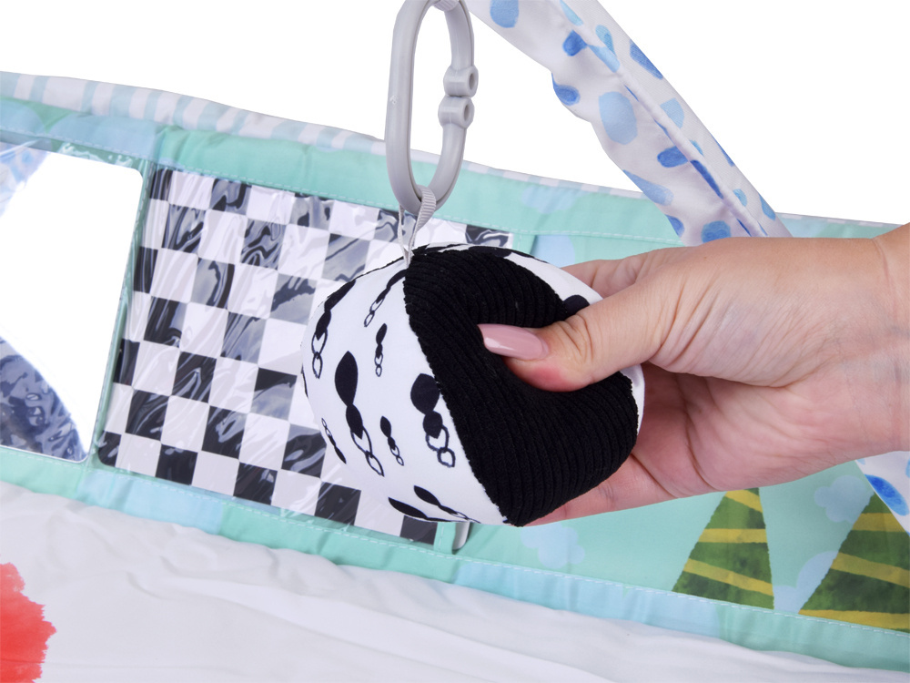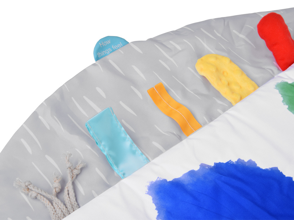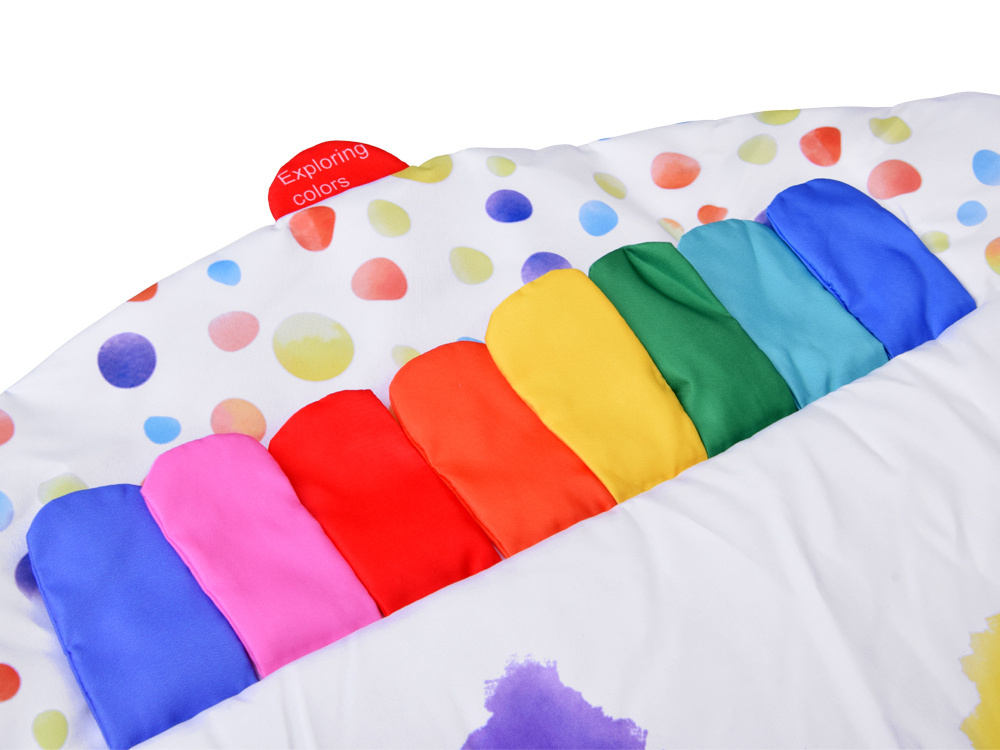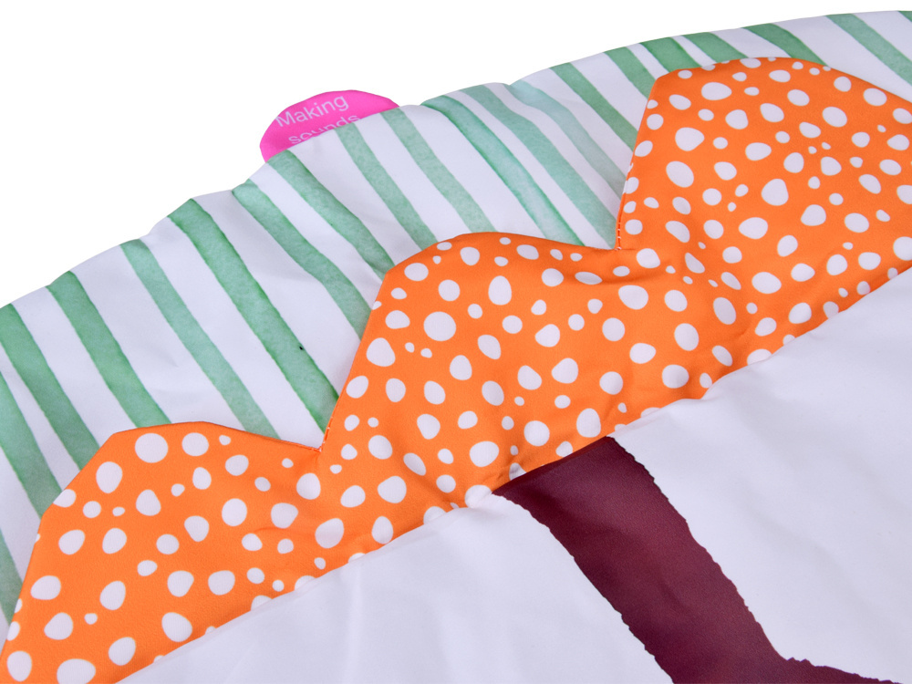 Przestronna i super miękka powierzchnia – duża, okrągła mata wykonana z wyjątkowo delikatnego materiału zapewnia maluszkowi komfort i bezpieczeństwo podczas leżenia, siedzenia czy raczkowania. Idealna dla wrażliwej skóry niemowlaka.