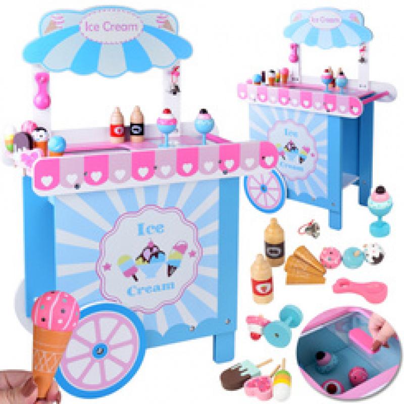 Drewniana budka z lodami – pastelowa lodziarnia dla dzieci