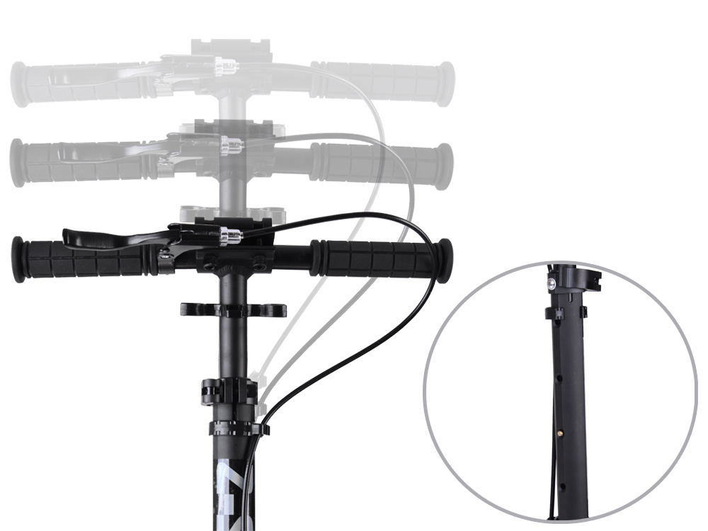 - Regulacja Wysokości Kierownicy: Możliwość ustawienia wysokości kierownicy w zakresie od 85 do 103 cm, co pozwala dostosować hulajnogę do wzrostu użytkownika.