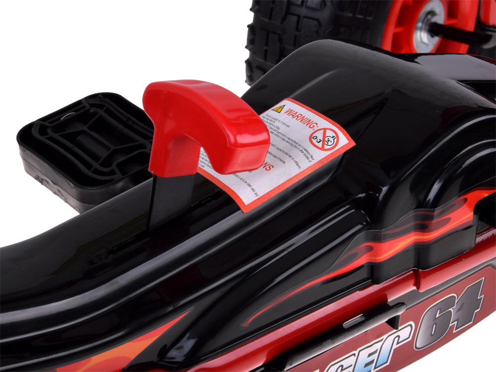Pojazd posiada funkcję jazdy do przodu i do tyłu a także wolny bieg- czyli możliwość jazdy na luzie, bez konieczności pedałowania. Przekładnia łańcuchowa i metalowe zębatki sprawiają, że mechanizm napędowy jest solidny i odporny na intensywne użytkowanie.