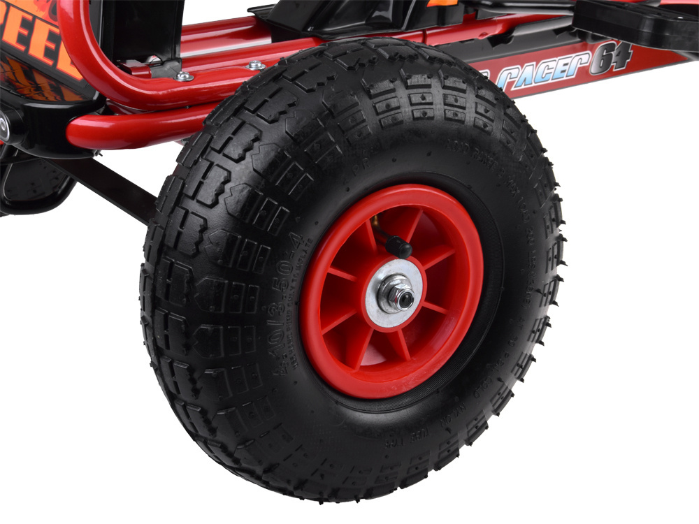 Duże, pompowane, gumowe koła poprawiają komfort jazdy oraz zapewniają dobrą przyczepność i amortyzację na nierównym terenie.