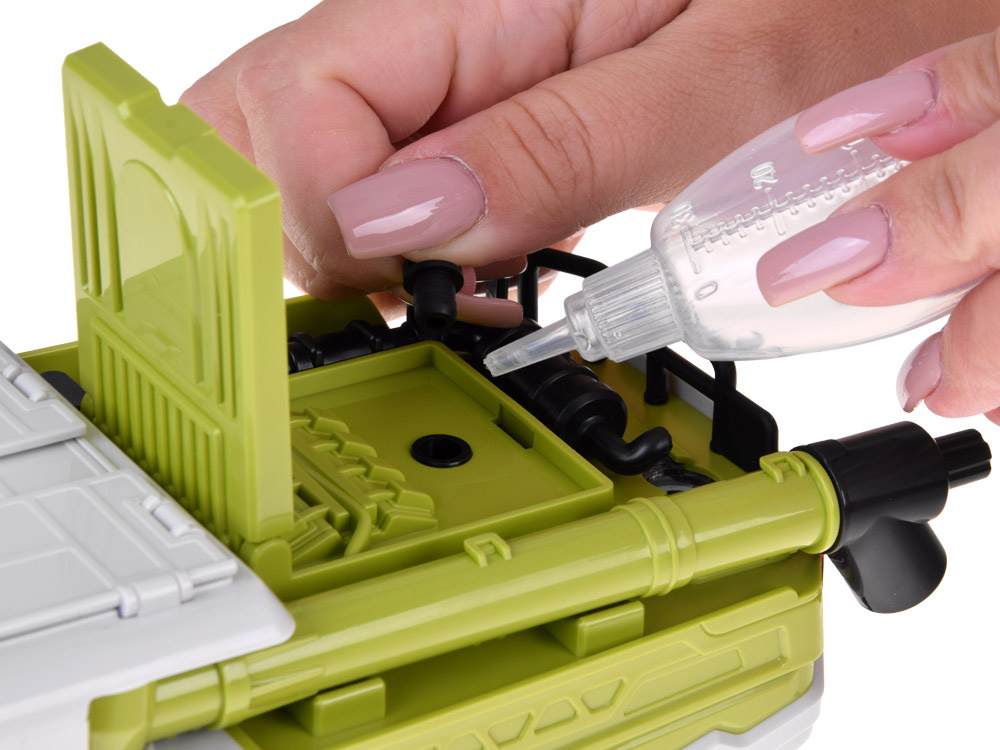 - funkcja dymienia: po nalaniu wody do zbiornika na dachu z kombajnu będą unosić się kłęby pary, dodatkowo podświetlane przez diodę
