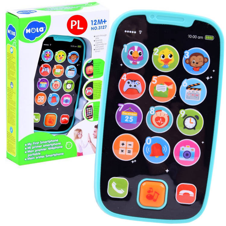 Interaktives Telefon auf Polnisch für Ihr Kind wird für viel Spaß sorgen. Es ist keine bekannte Tatsache, dass Kinder ihre Eltern genau beobachten und sie gerne nachahmen. Und so ist es heutzutage, man kann sich nicht mehr ohne sein Telefon bewegen! Damit auch Ihr Kind Spaß an der Technik hat, hat Hola ein absolut sicheres, vielseitiges, leichtes und praktisches erstes Smartphone für Ihr Kind auf den Markt gebracht.